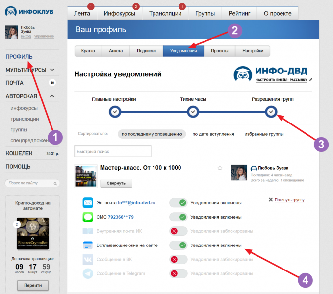 Как бы мне отписаться из большинства тем, от уведомлений, которые появляются справа...