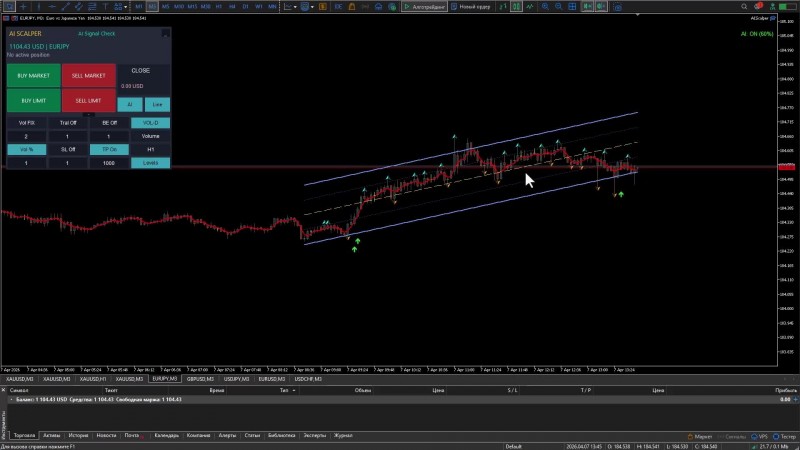 1️⃣ Встроенный сканер непрерывно анализирует валютные пары и показывает те, в которых по стратегии созрела благоприятная ситуация. И обозначает конкретные места прямо на графике.
