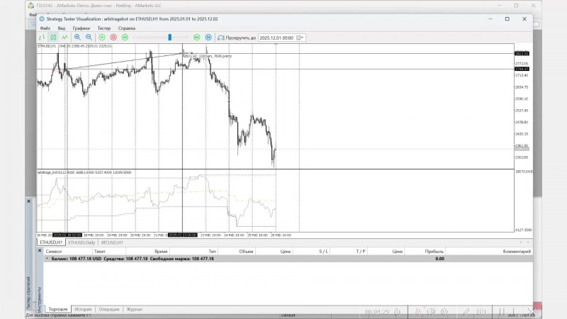 В этом видео запустим робота со стратегией одноногого арбитража в торговлю на пару Эфир и Биткоин и смотрим его результаты за 2025 год.