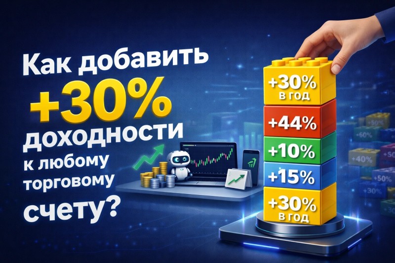 Стратегия идеально подходит для ЛЮБОГО портфеля. Это значит, ее можно поставить на любой торговый счет и получать на этом счете дополнительно +30% доходности.