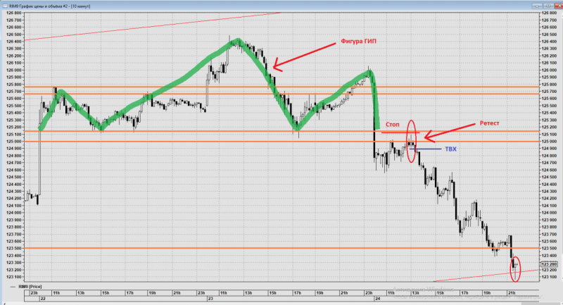 Причина входа: на ценовой зоне 125150/125000 сформировалась фигура ГИП.