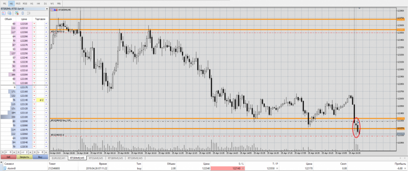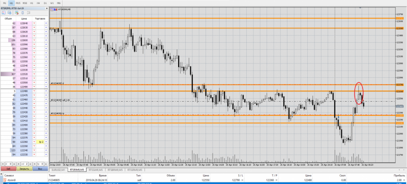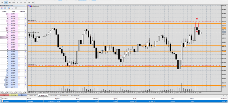 Сделки от 26 апреля по фьючерсу РТС.