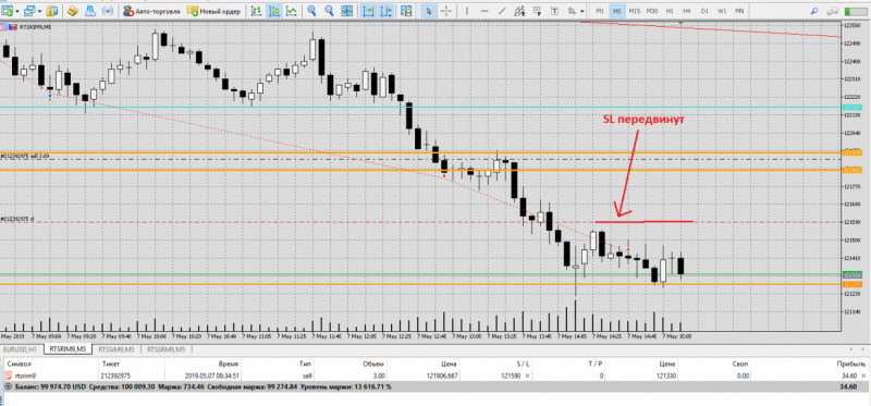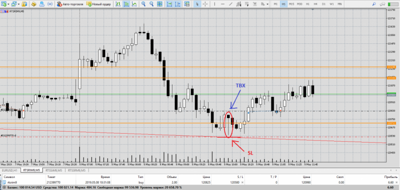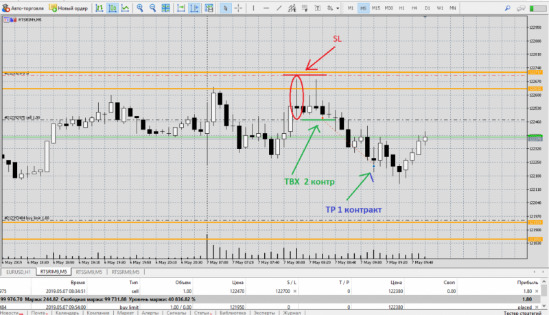 Первый TP: 122240 одним контрактом (БУ в случае SL).