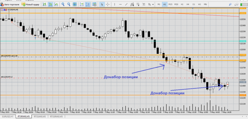 Донабор позиции + 1 контракт на локальных уровнях с переустановкой уровня SL.