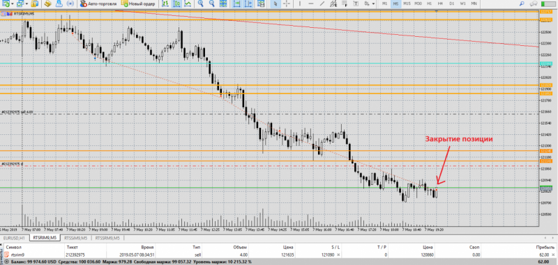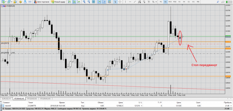На уровне 120850 - закрытие всей позиции. Причина: окончание торговой сессии.