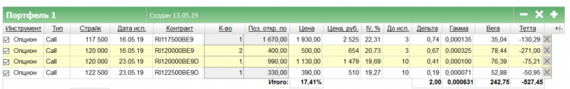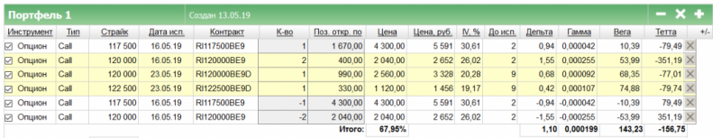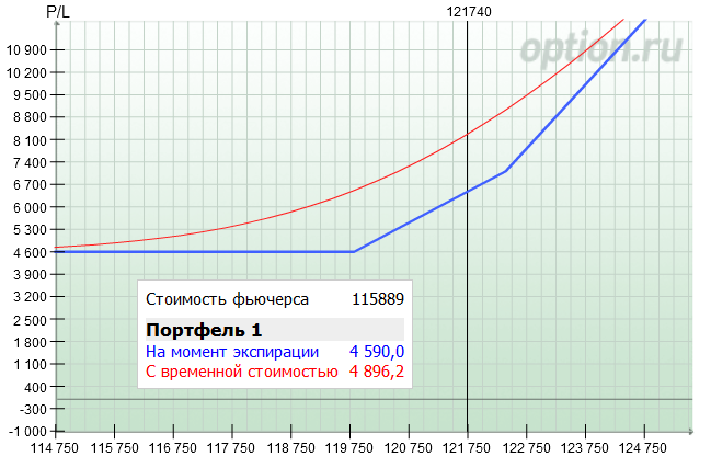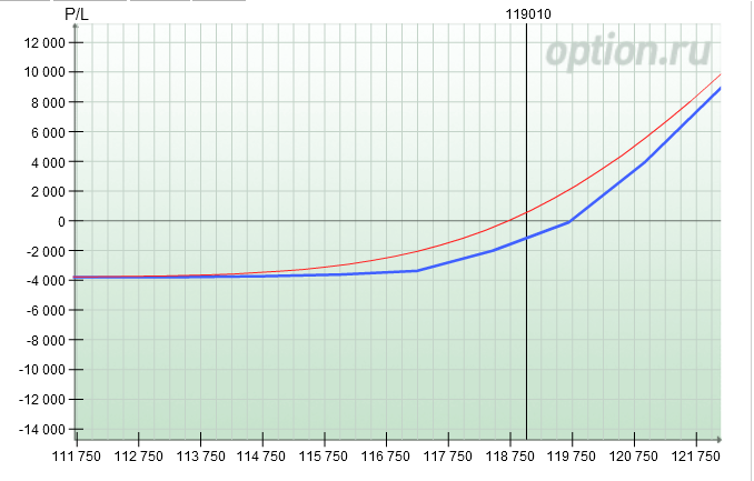 Распределяем на 2 даты экспирации. Риск около 5000 рублей.