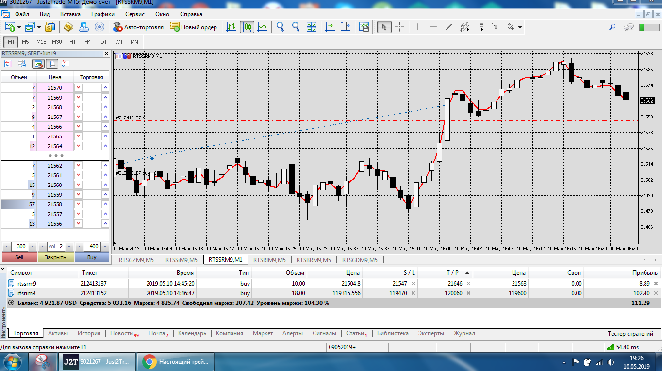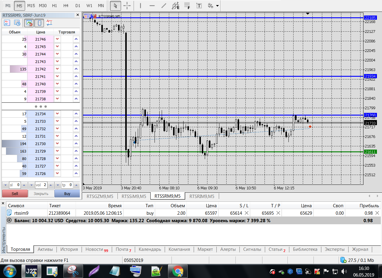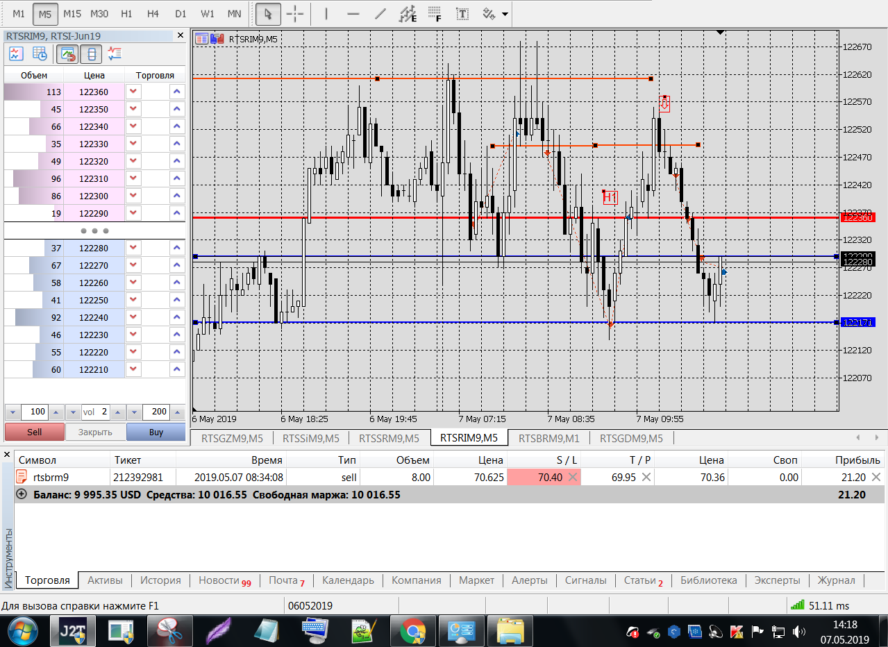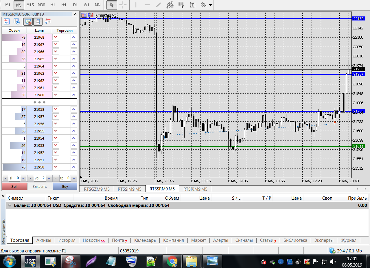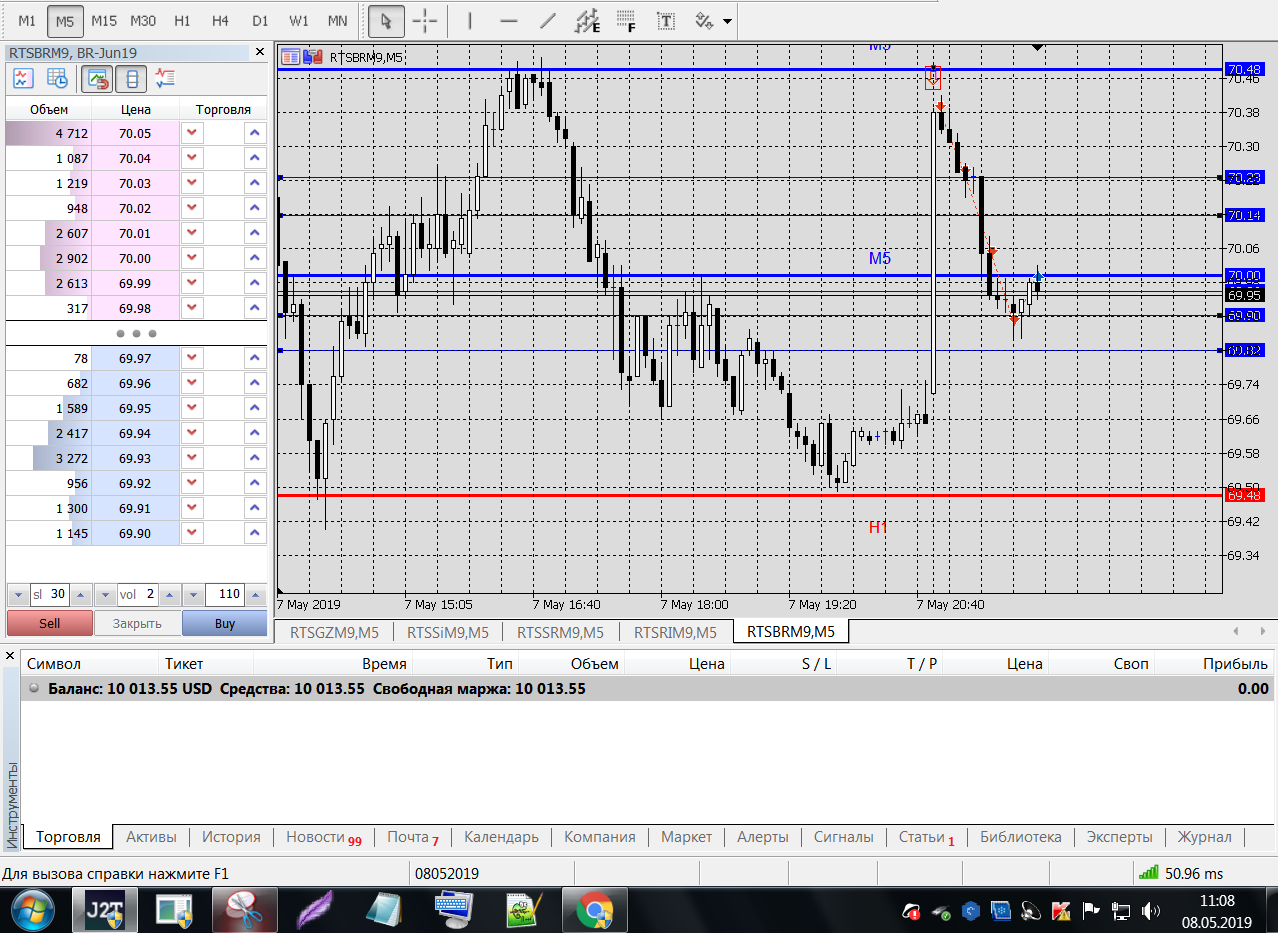 Все это на работе, время и возможность открыть терминал на торговлю ограничены.