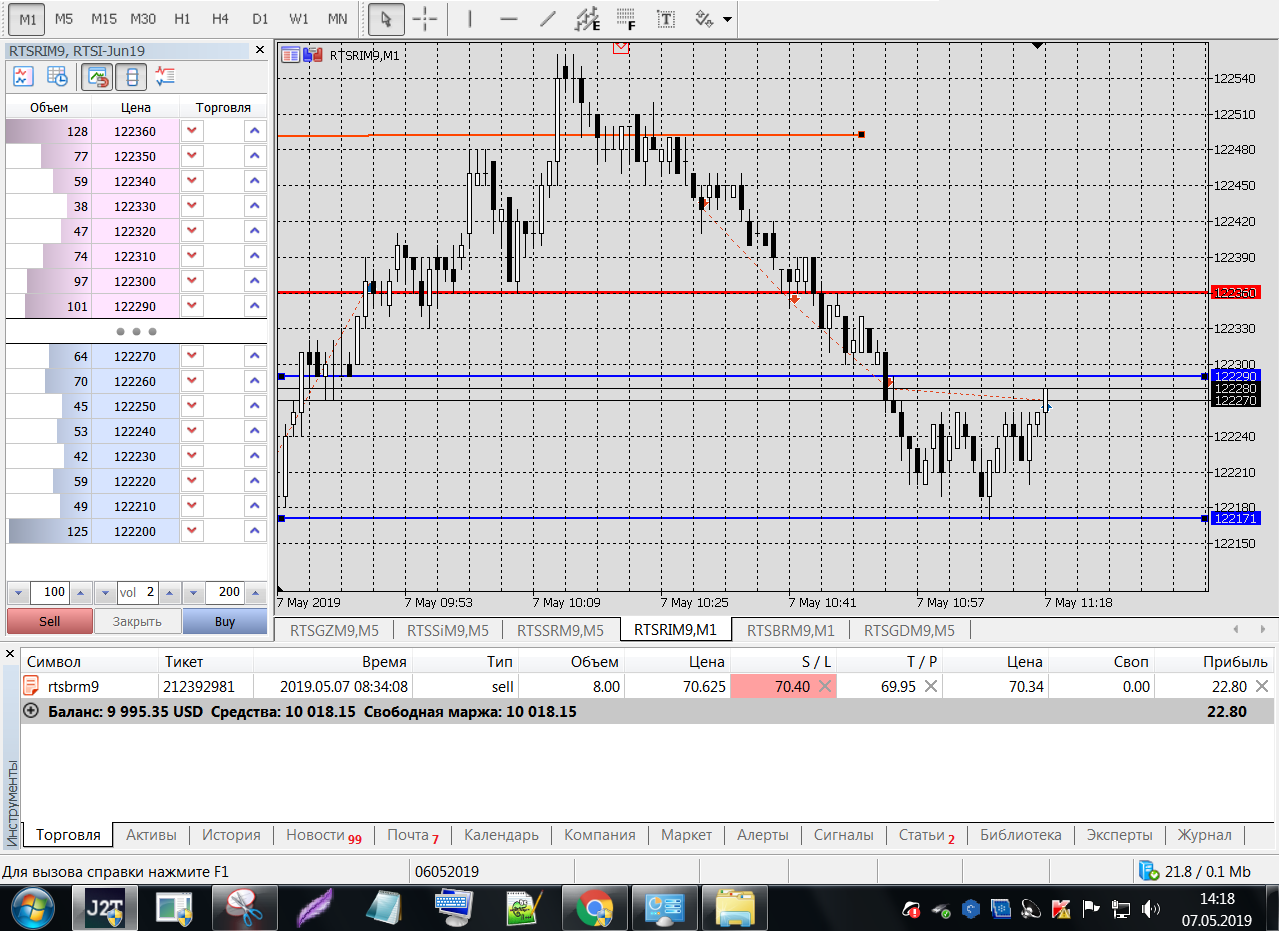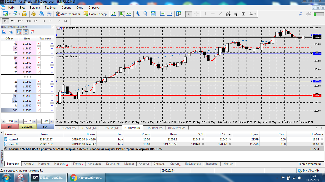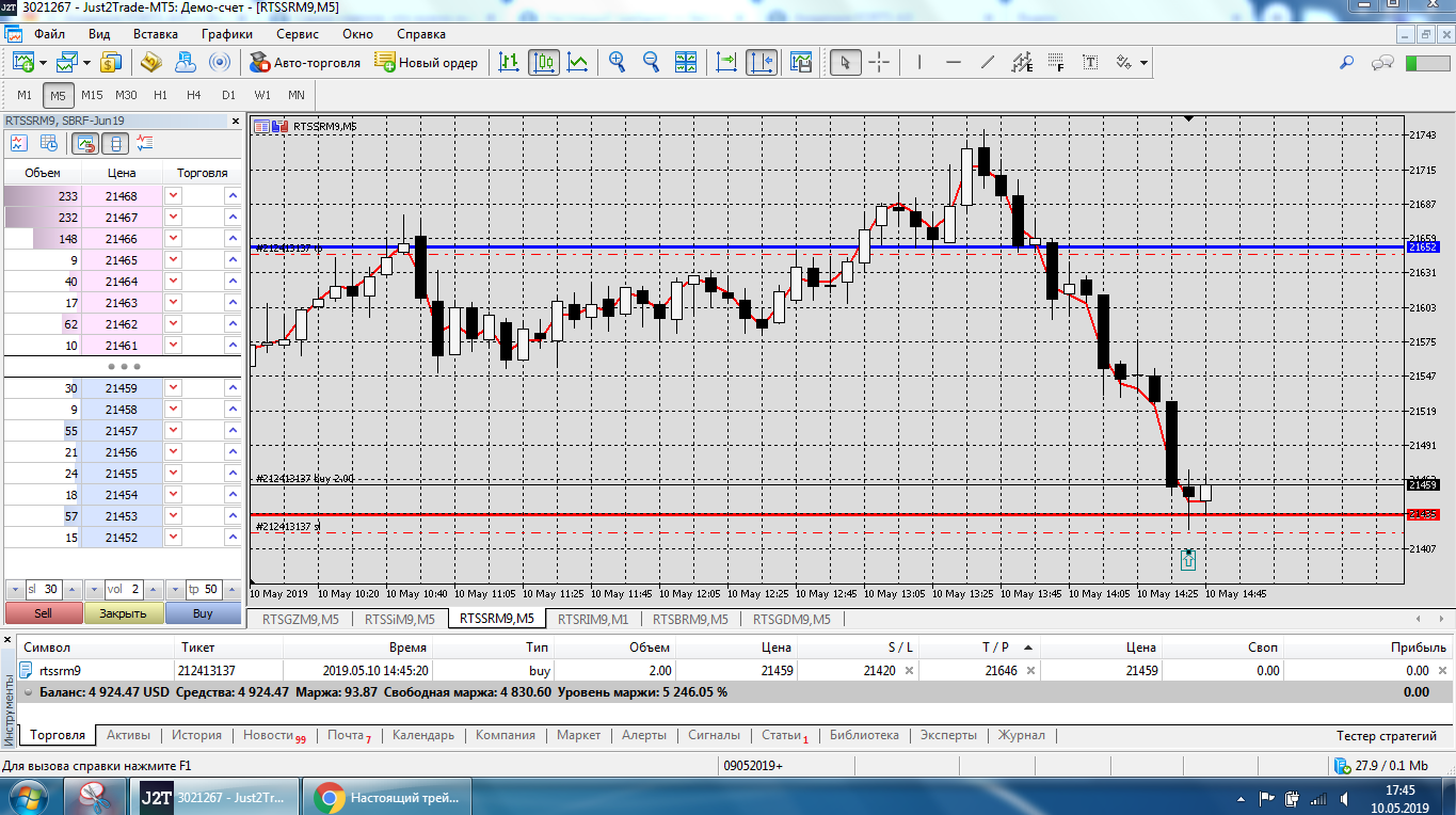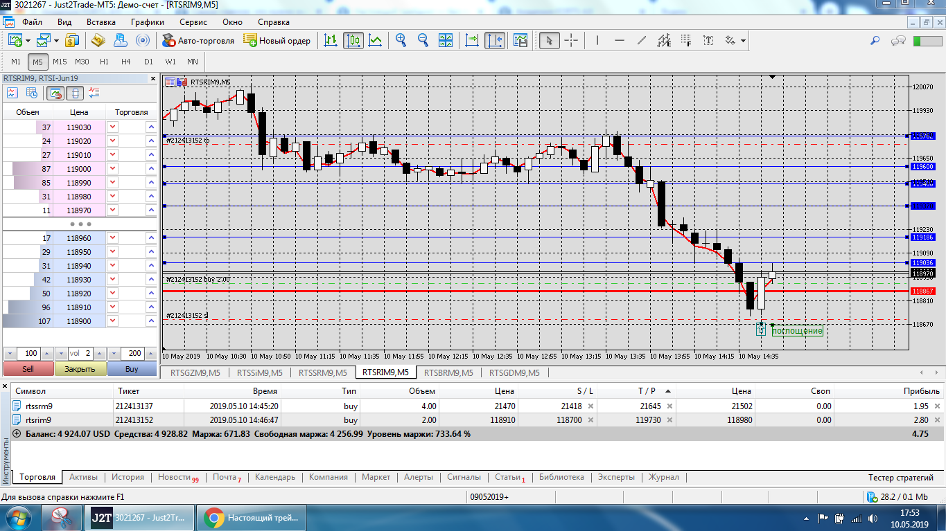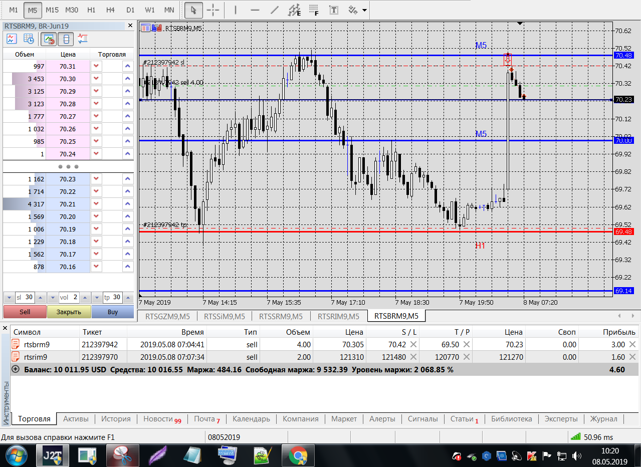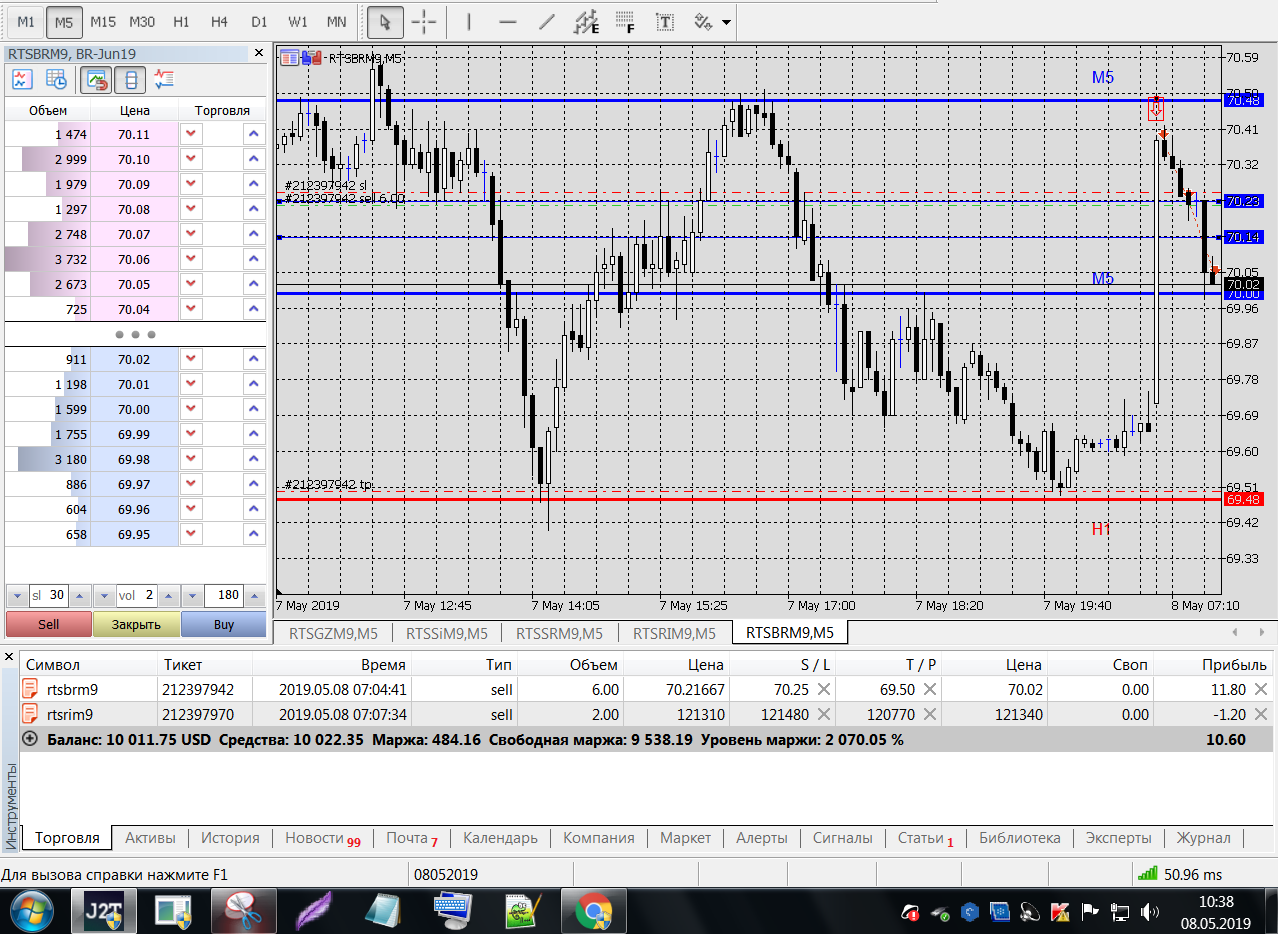 Все это на работе, время и возможность открыть терминал на торговлю ограничены.