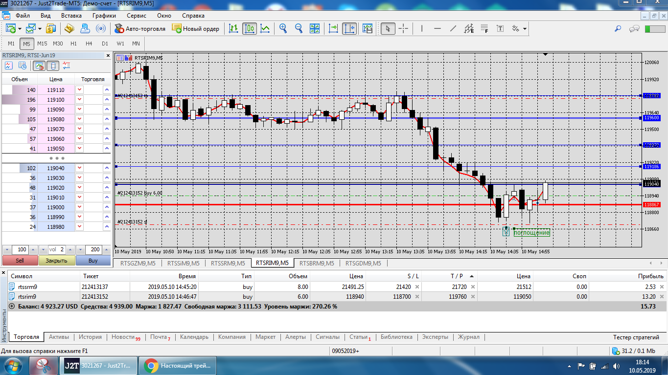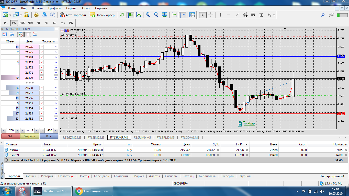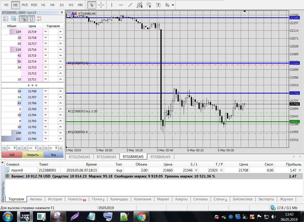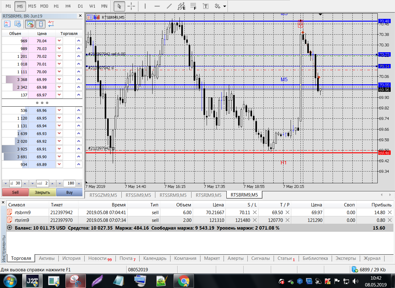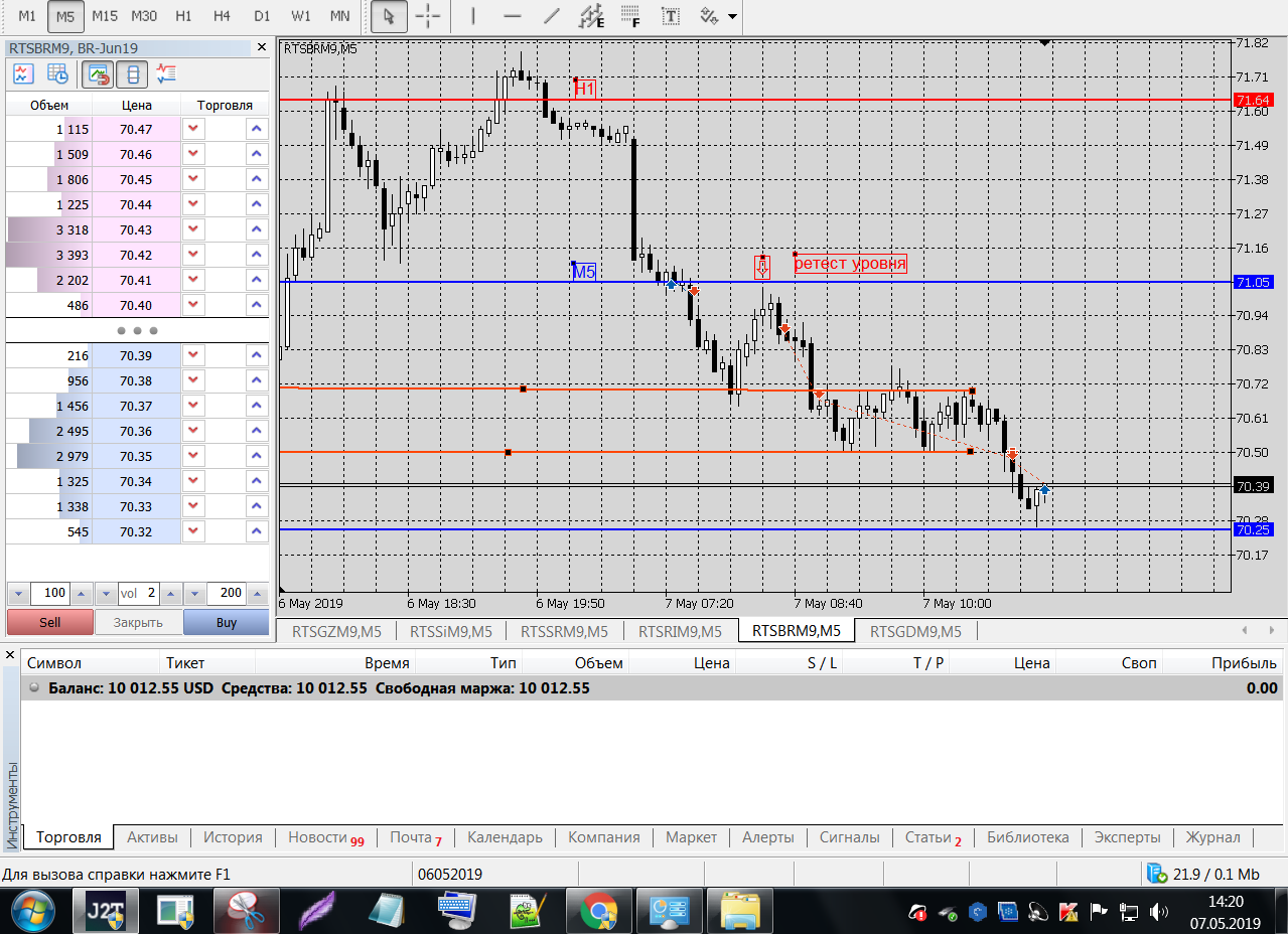Все это на работе, время и возможность открыть терминал на торговлю ограничены.