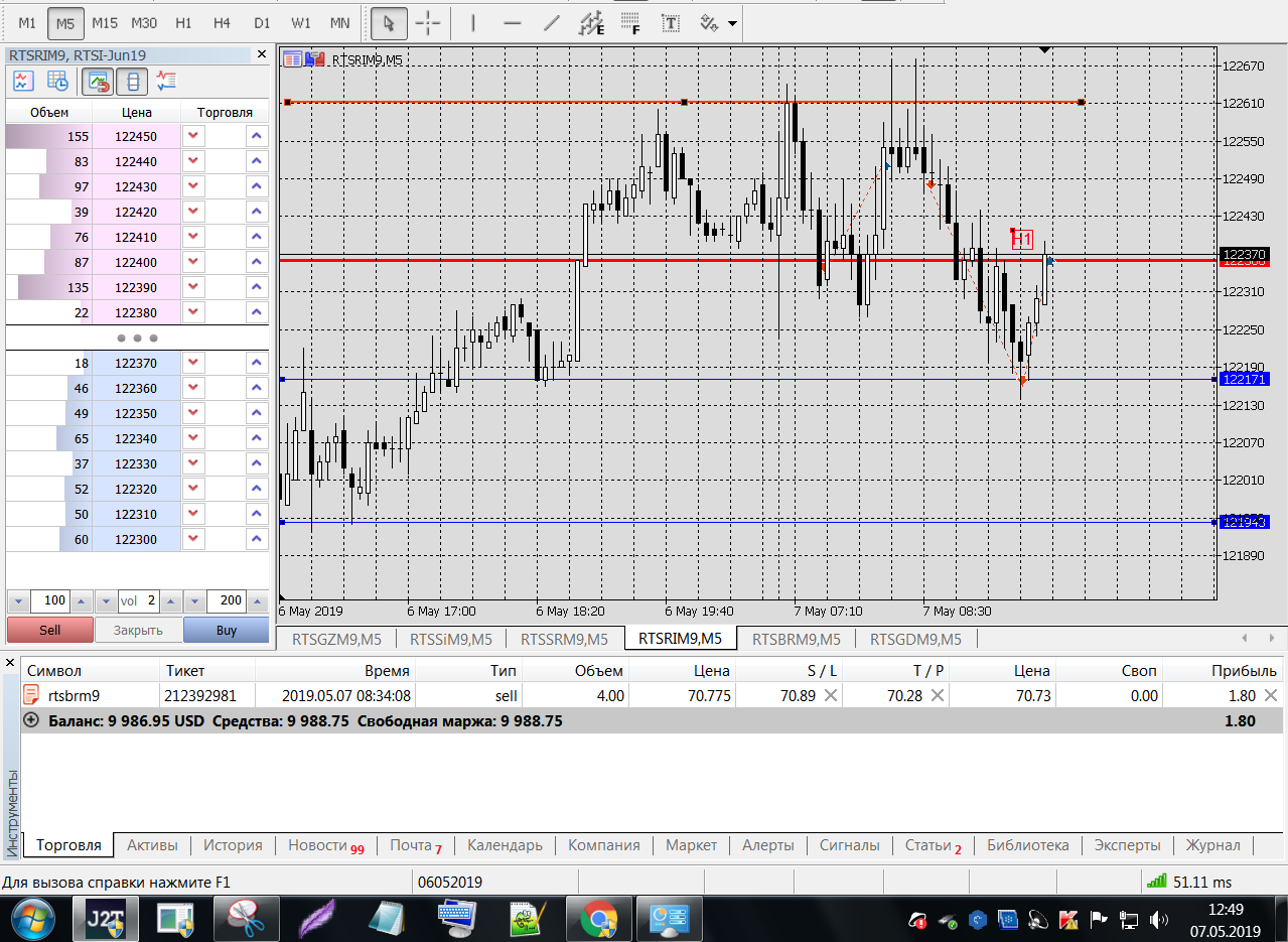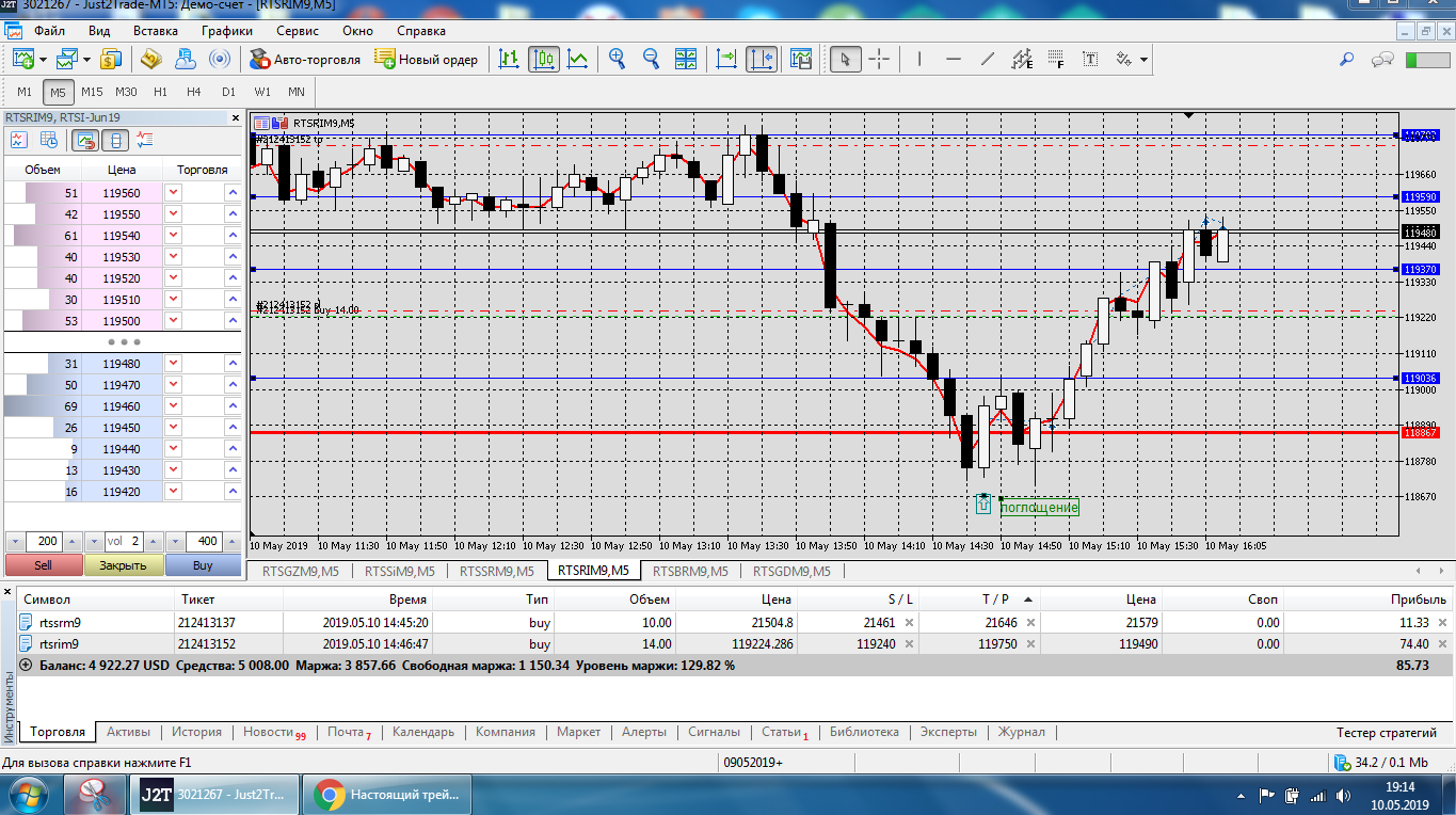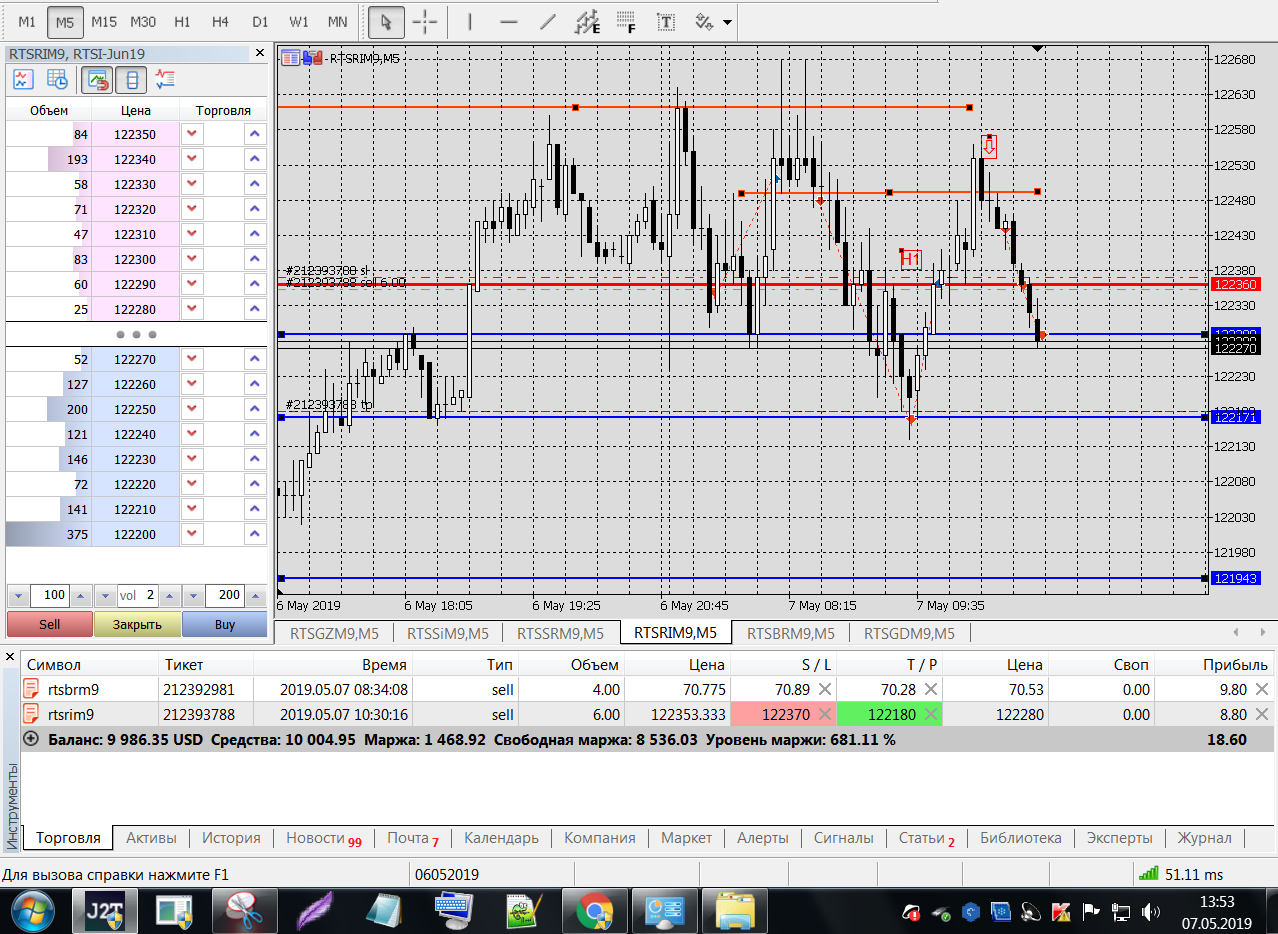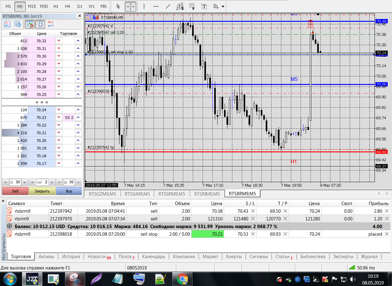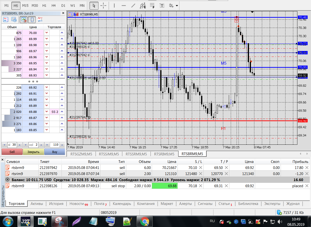 Все это на работе, время и возможность открыть терминал на торговлю ограничены.