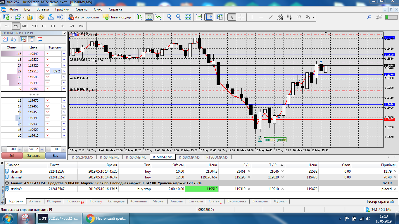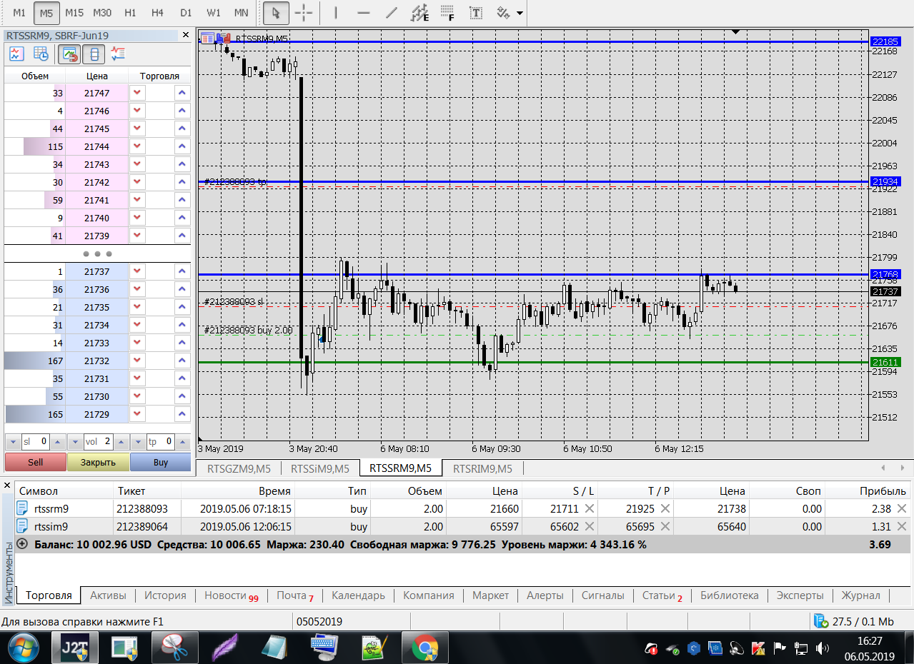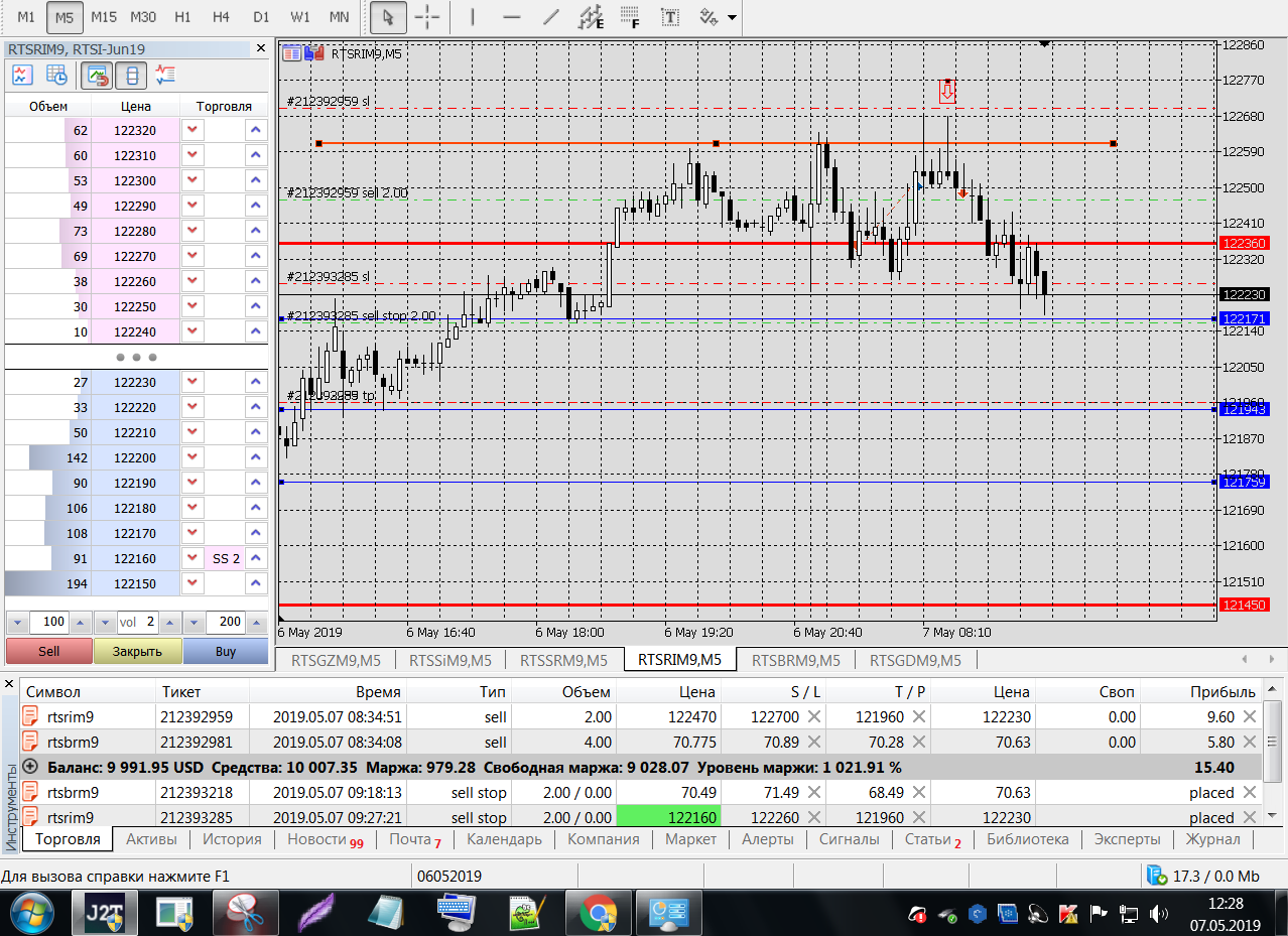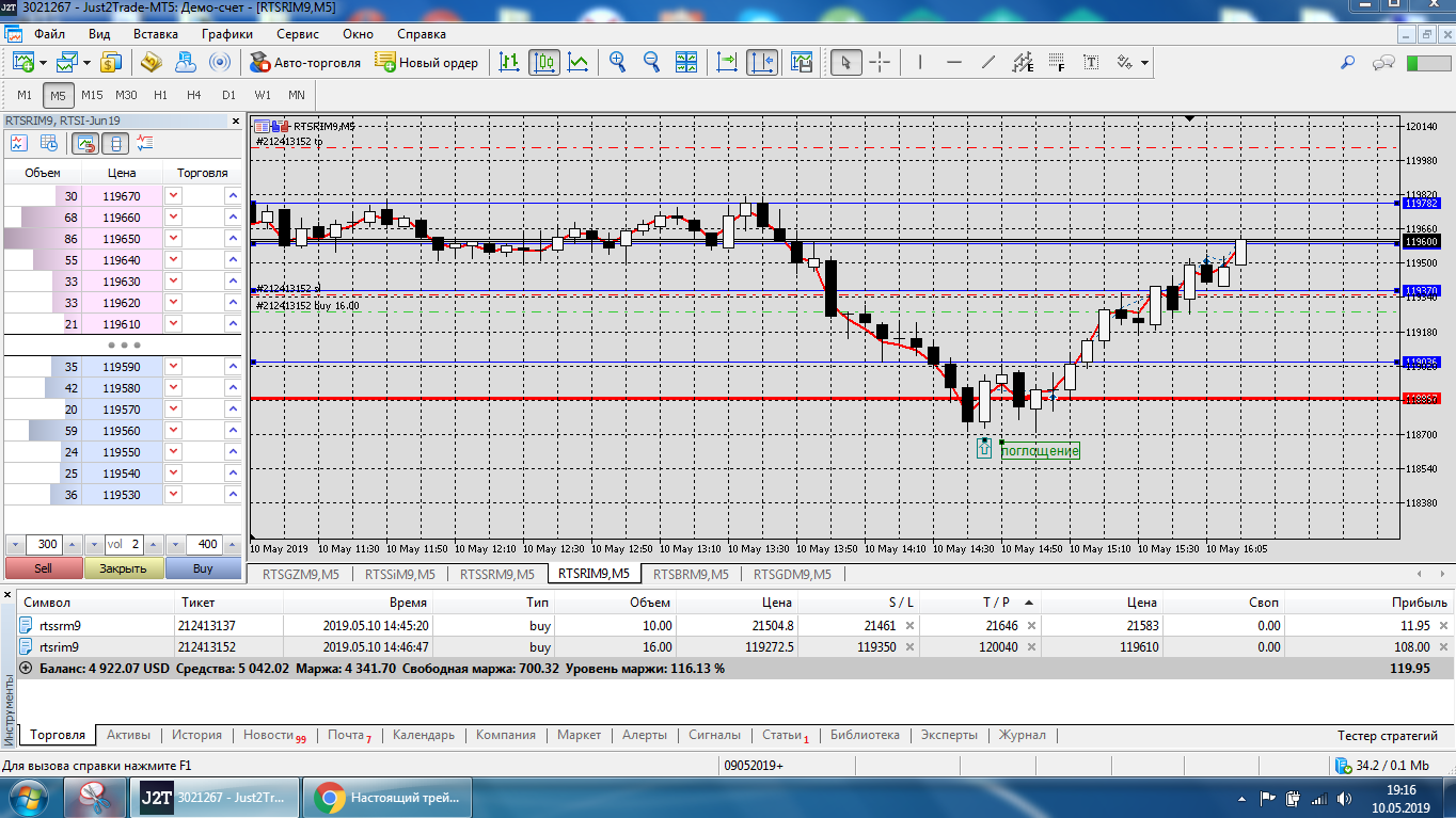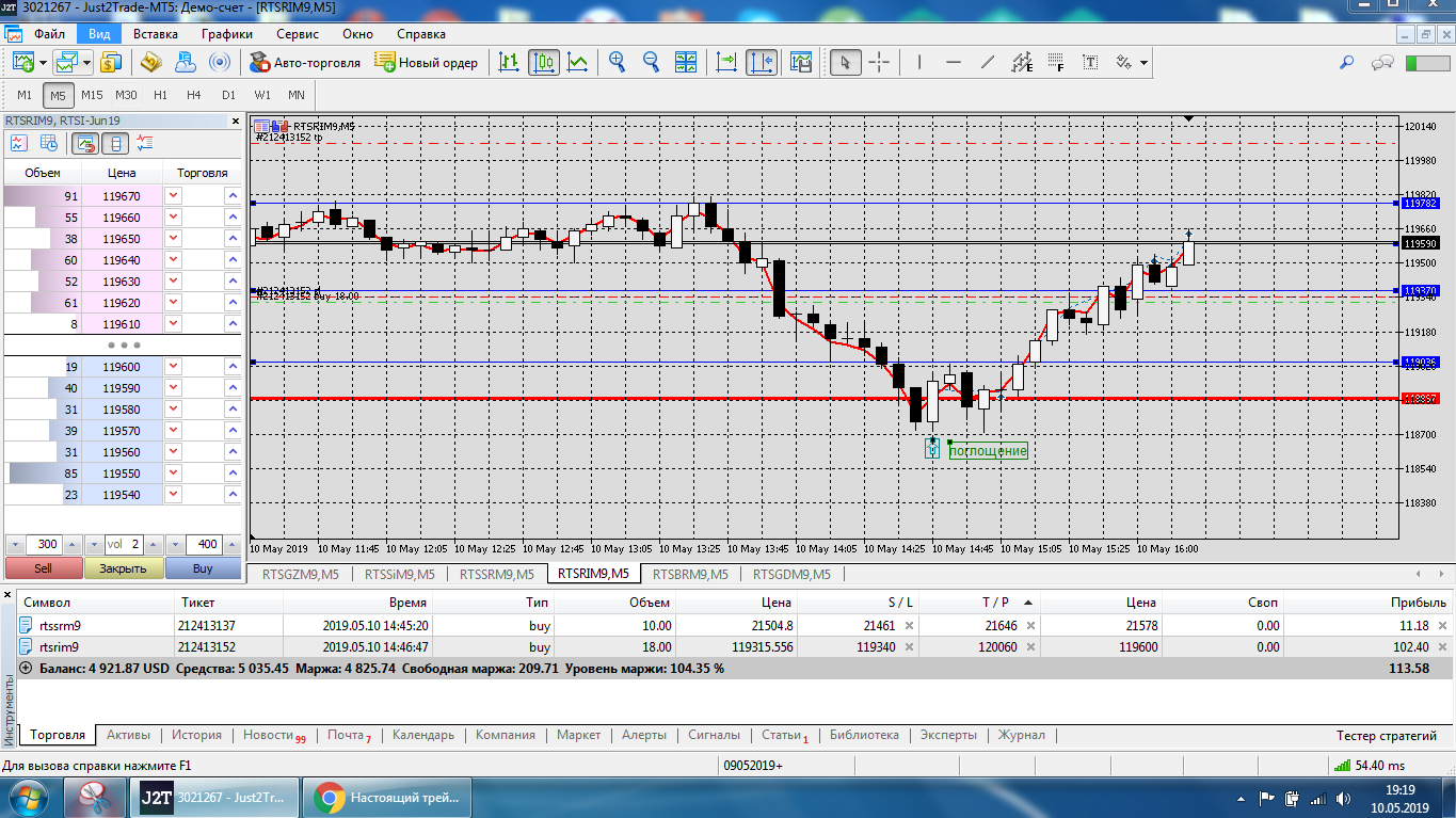 Все это на работе, время и возможность открыть терминал на торговлю ограничены.