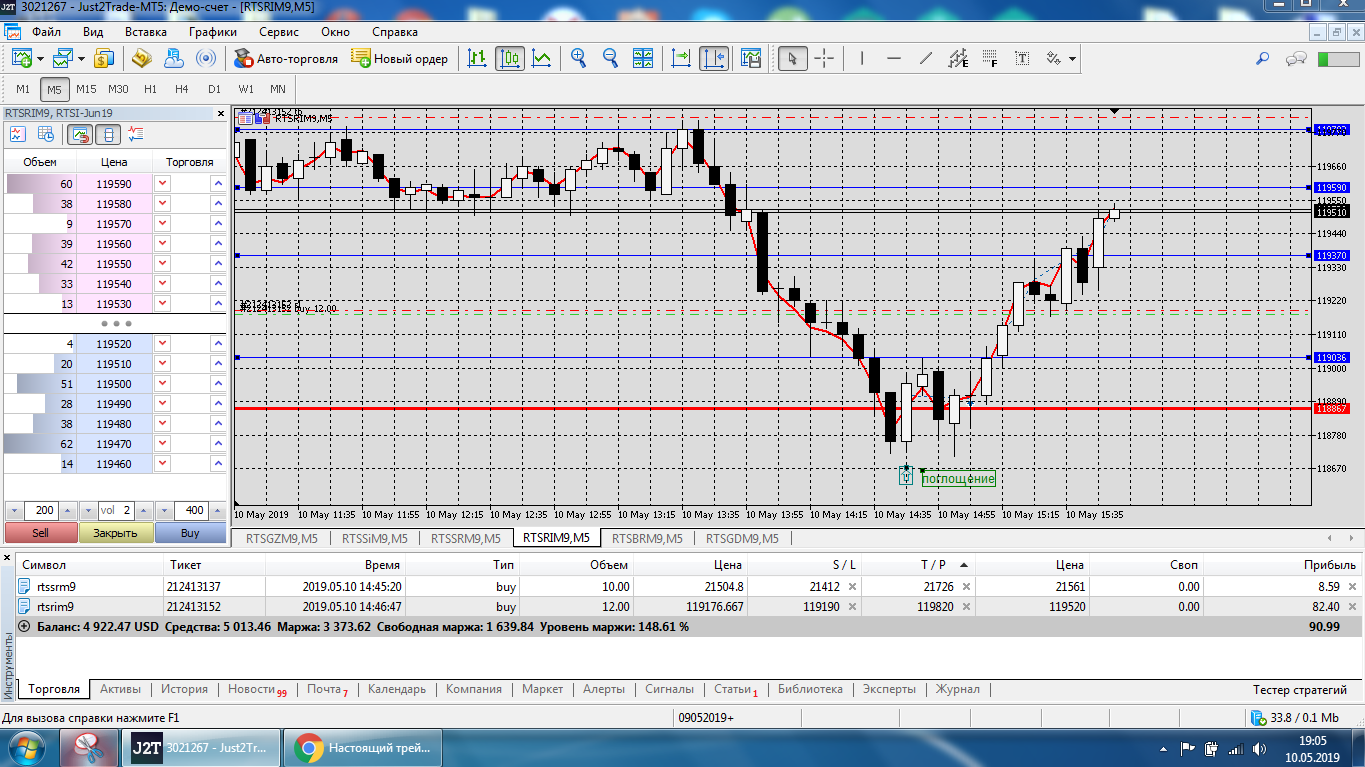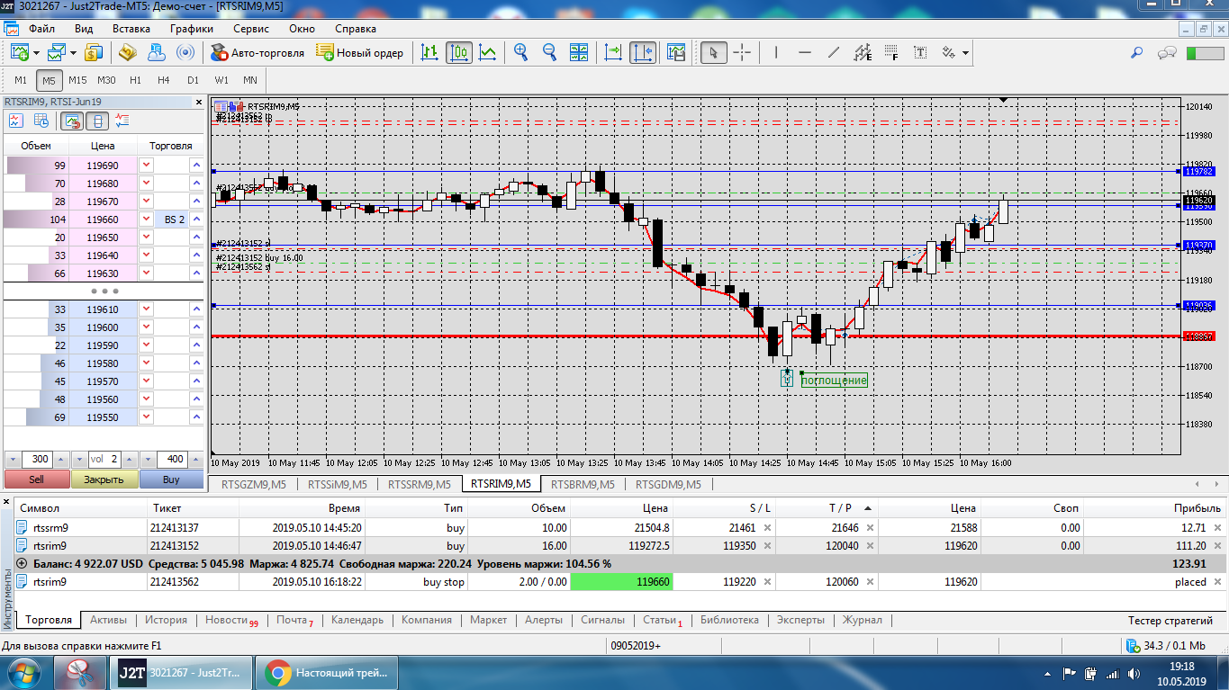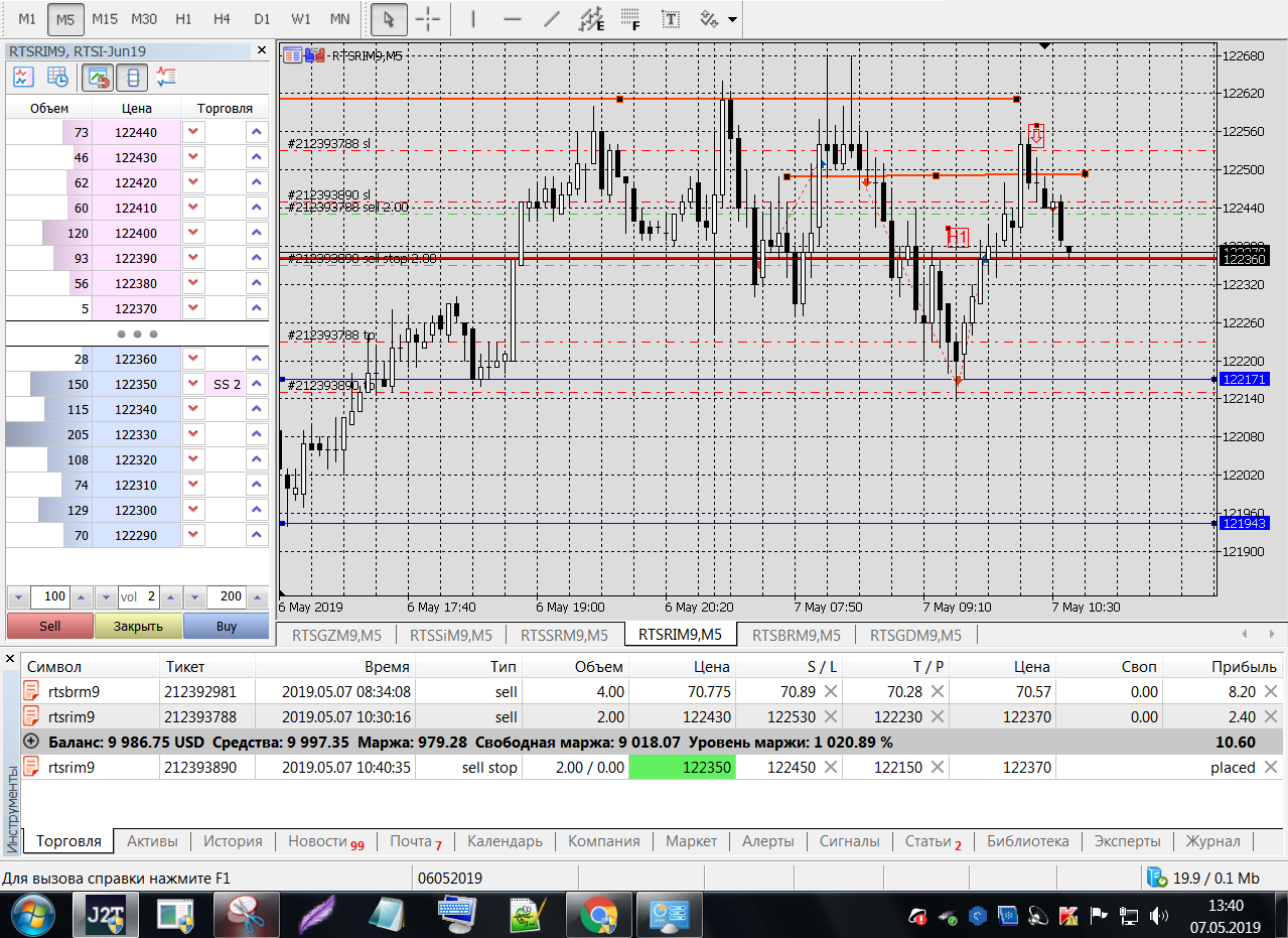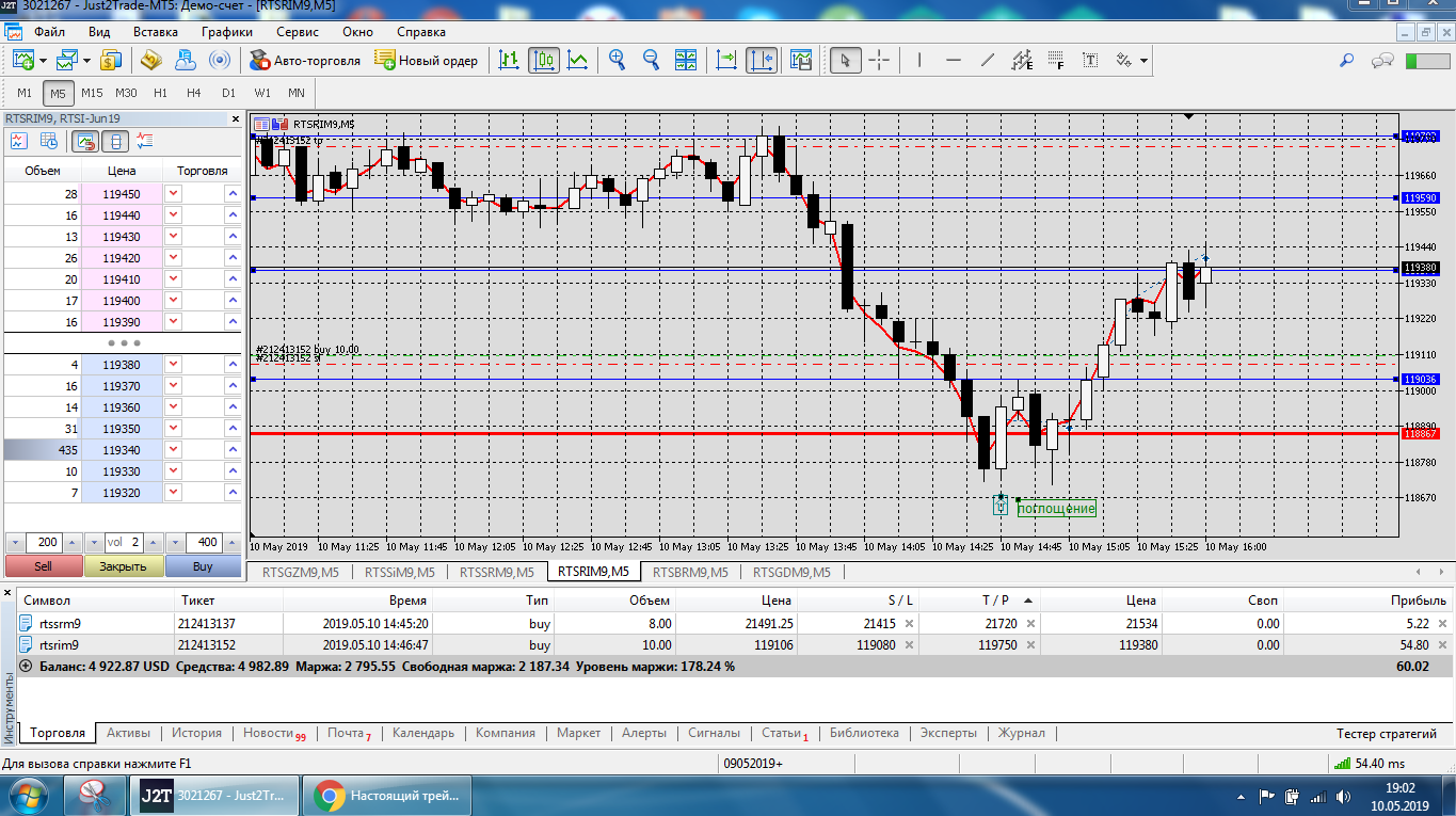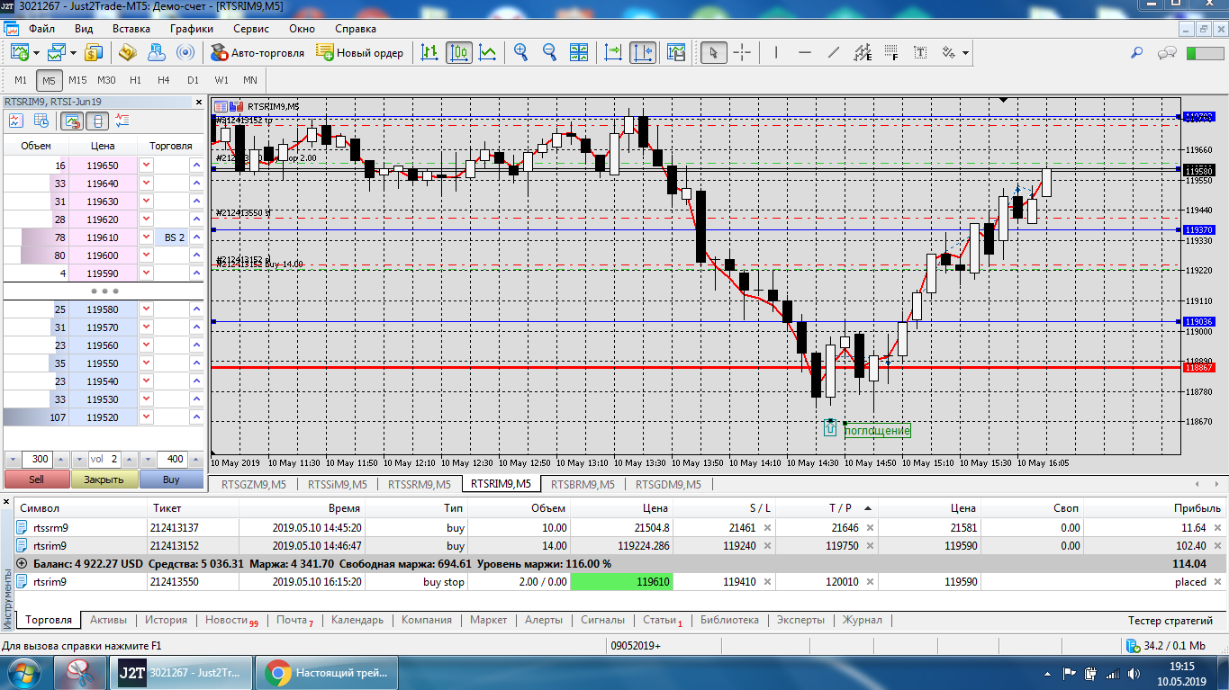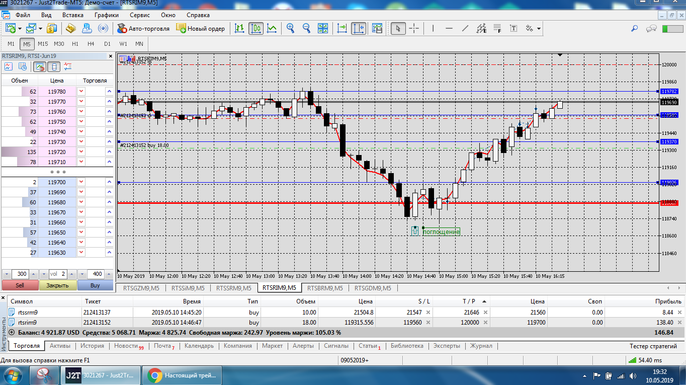 Все это на работе, время и возможность открыть терминал на торговлю ограничены.