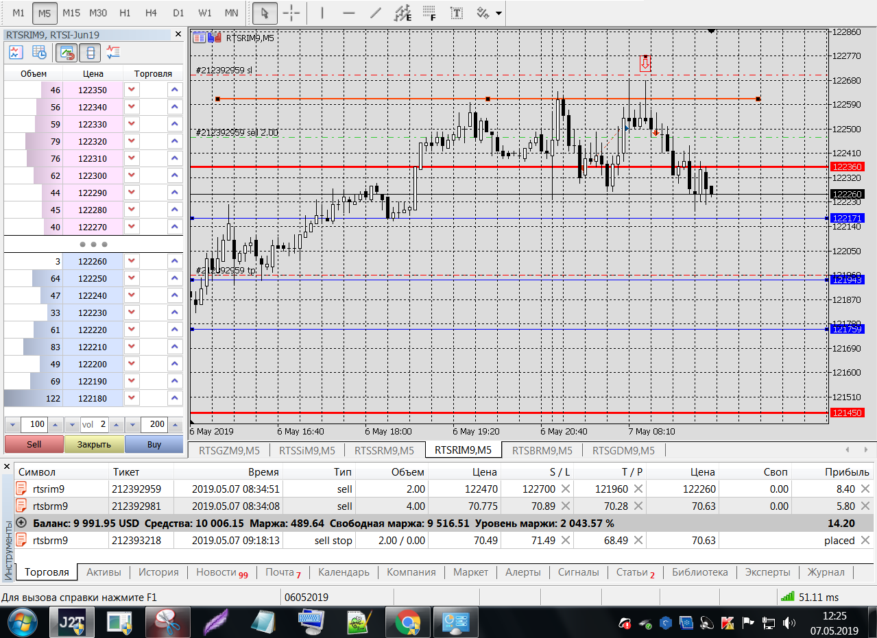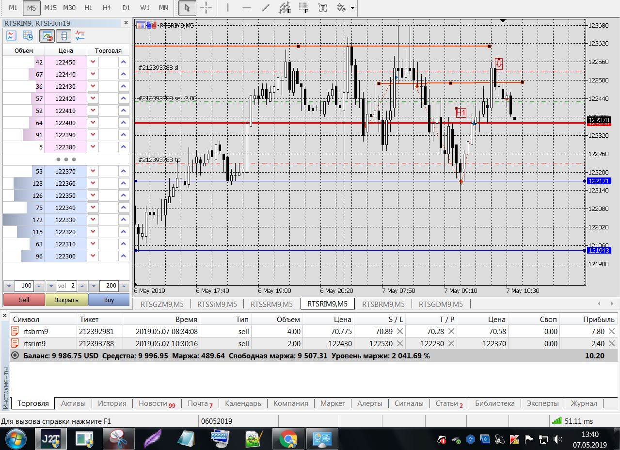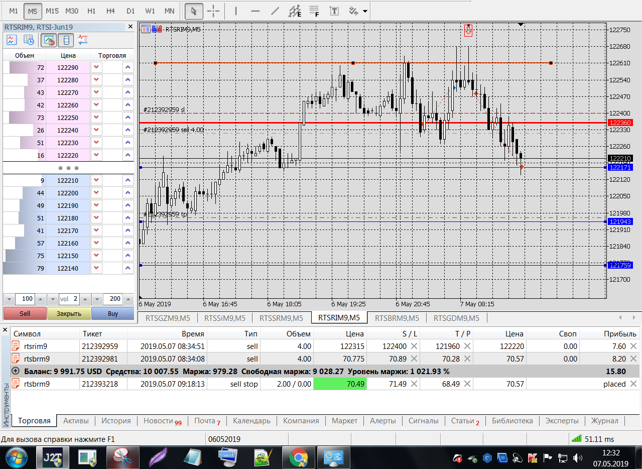 SRM9, входил по пин-бару от уровня Н1 по 2 контракта, выходил по стопу