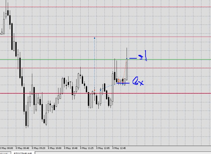 Сделка по Газпрому за 15 Мая.Интересно Ваше мнение - формацию вроде нашел хорошо, но по сути, поторопился наверно с входом, так как уровня как такового не было, руководствовался фигурой и , как мне показалось , разворотом после хорошего похода наверх.