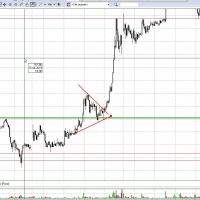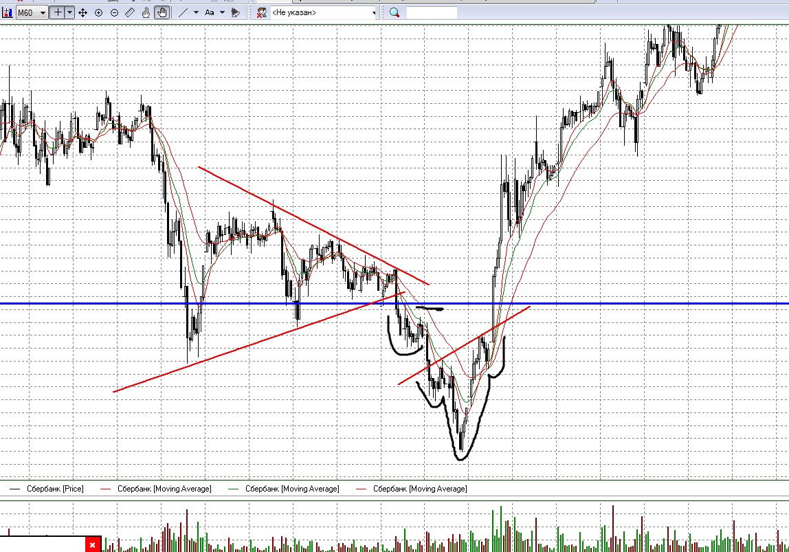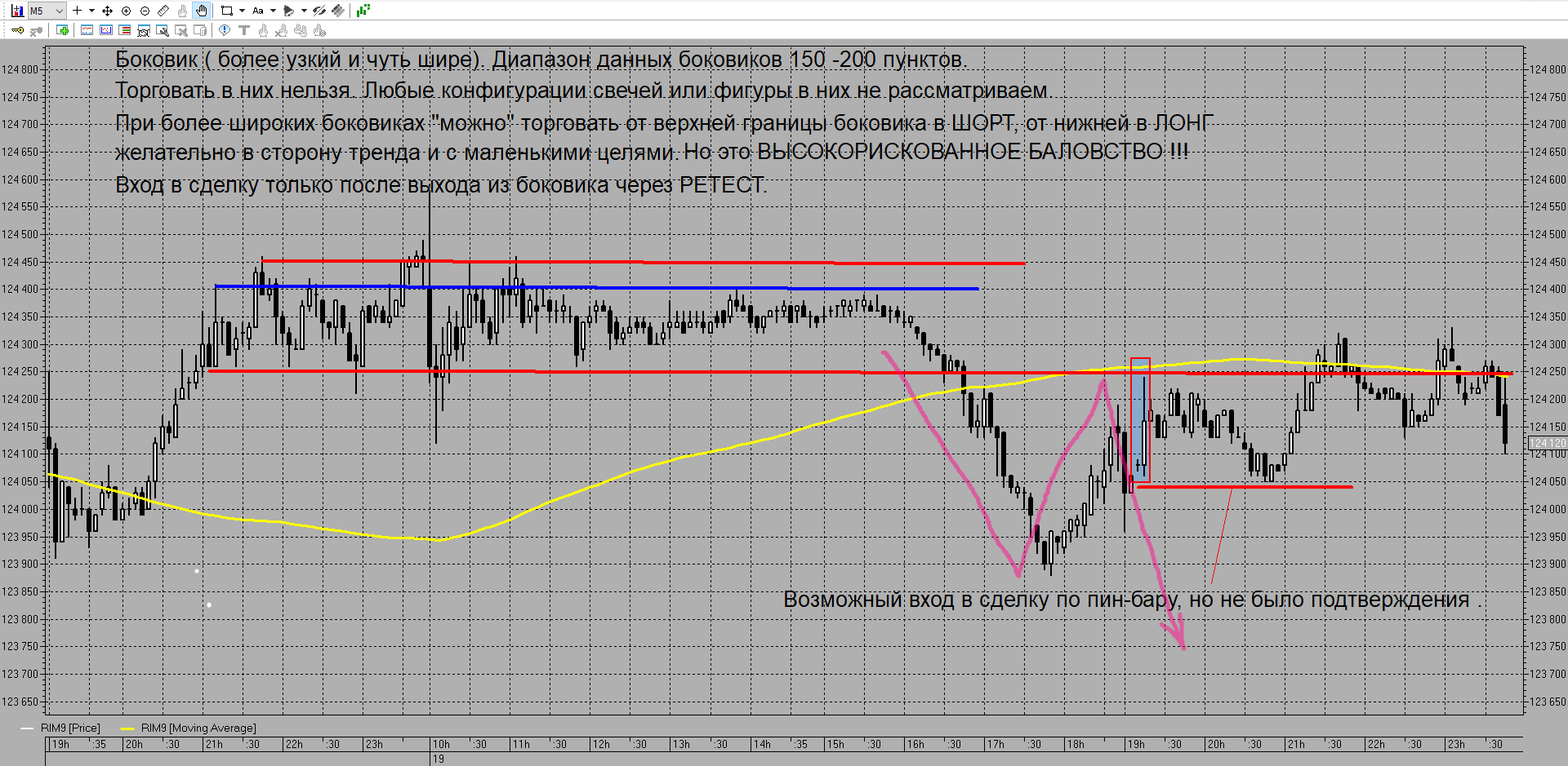 И хорошо бы на этом скрине показать, что было левее на графике или, наоборот, скрыть левую часть графика до момента начала роста цены. Чтобы было понятно, что цена росла, затем скорректировалась, "нарисовав" треугольник, и продолжила своё движение, выйдя из него. Как говорит Дмитрий, фигуры и свечные формации мы рассматриваем ТОЛЬКО НА ЭКСТРЕМУМАХ, игнорируя их в боковиках !!!