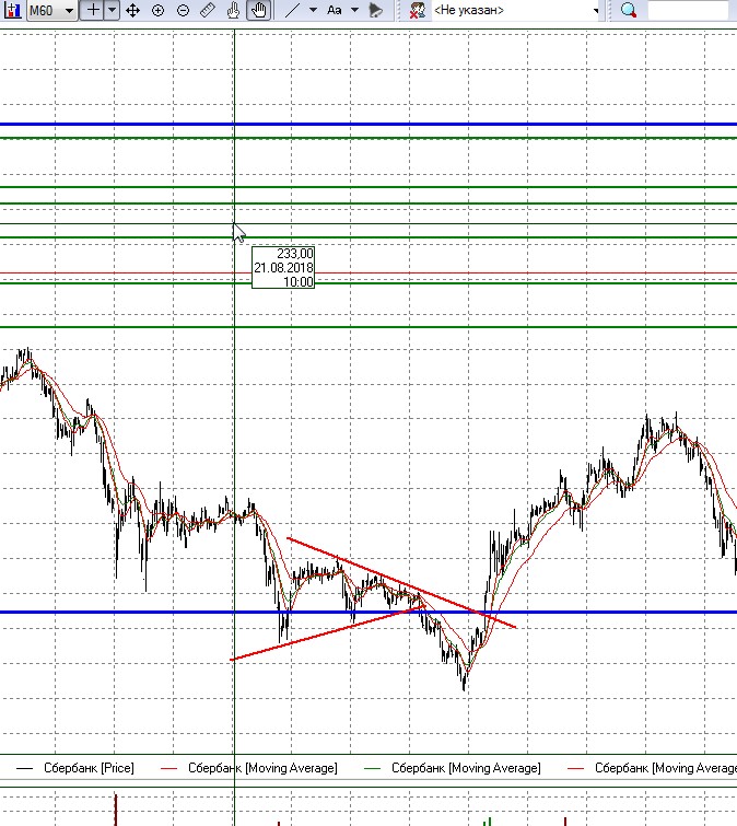 Треугольники Вы уже видите, надо переходить к следующему этапу - обращать внимание ТОЛЬКО НА ТРЕУГОЛЬНИКИ, ДАЮЩИЕ ВЕРОЯТНОСТЬ ДЛЯ ВХОДА В СДЕЛКУ, т.е. на уровнях. Исходя из этого второй треугольник на Вашем 4 скрине находится между Вашими уровнями, т.е. не подлежит рассмотрению.