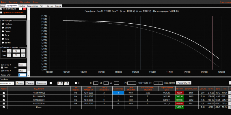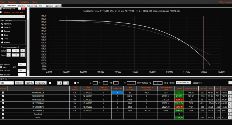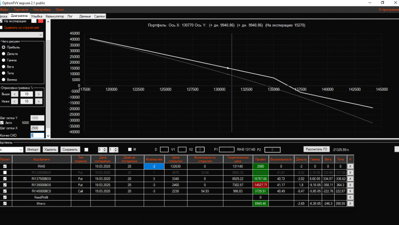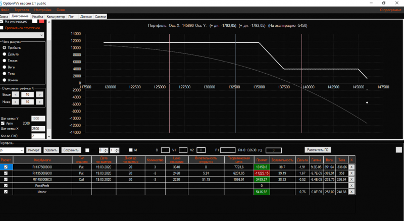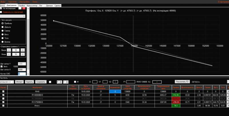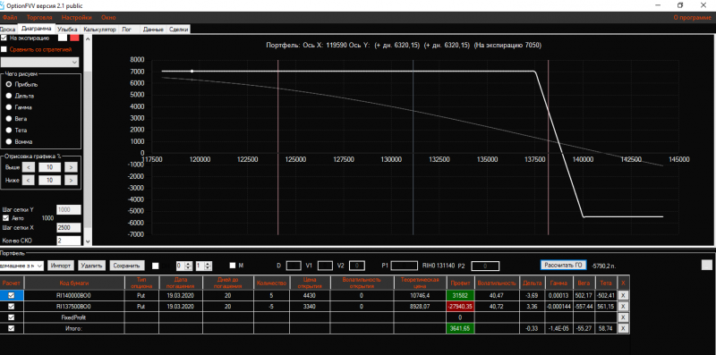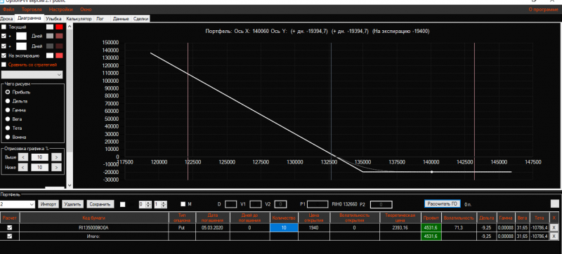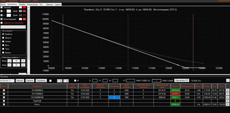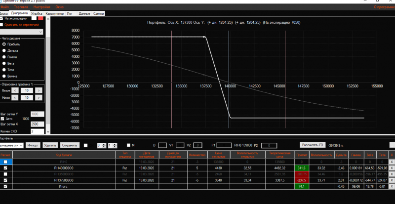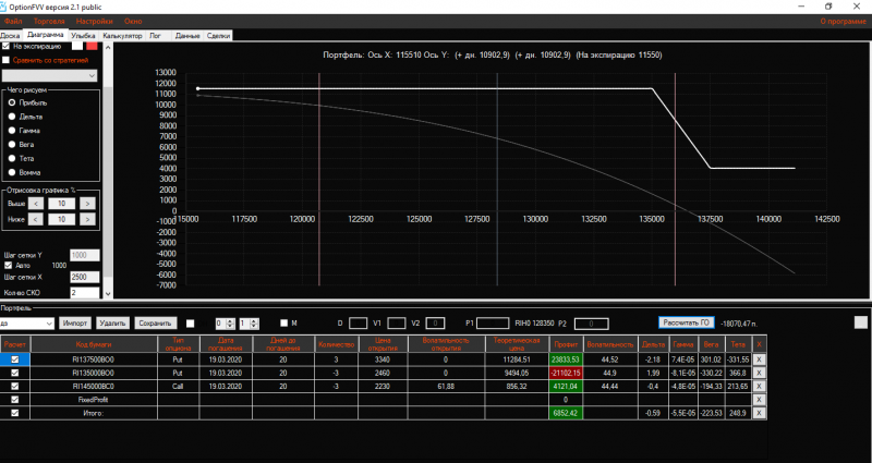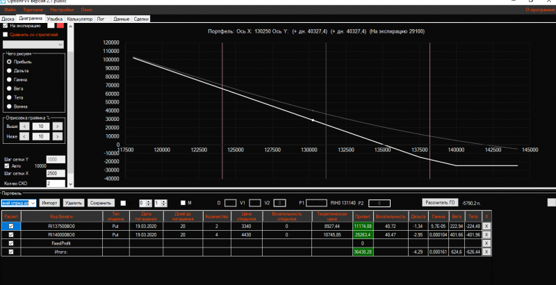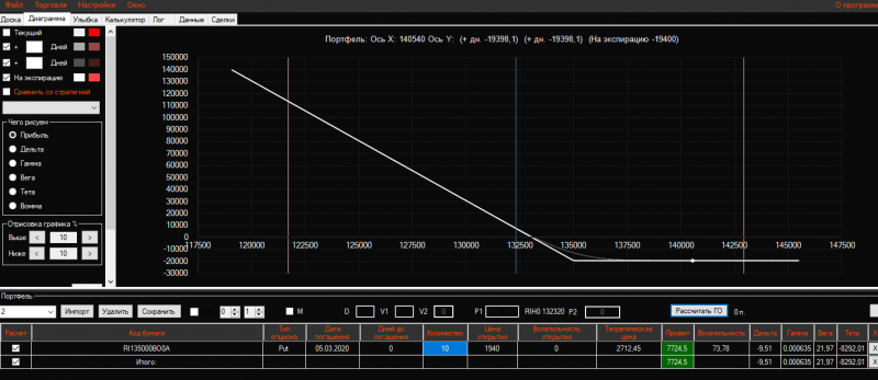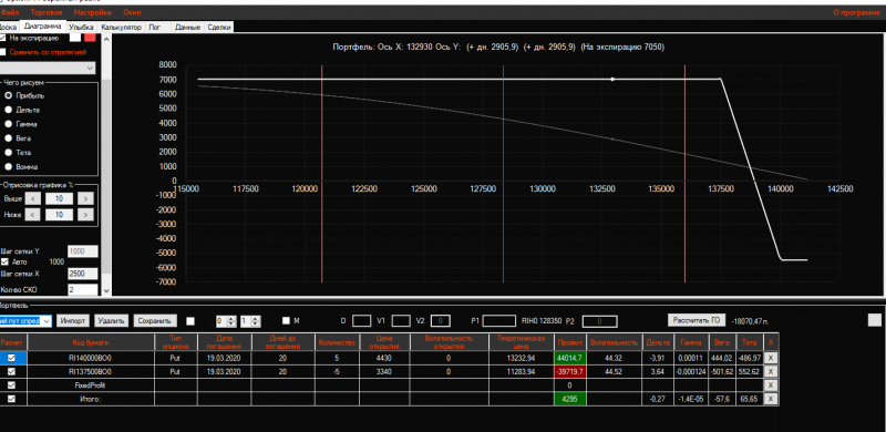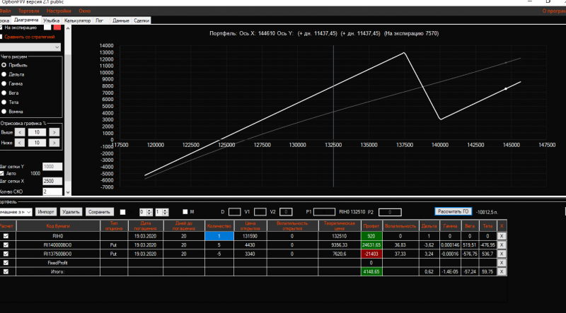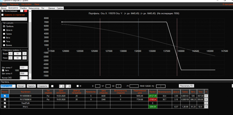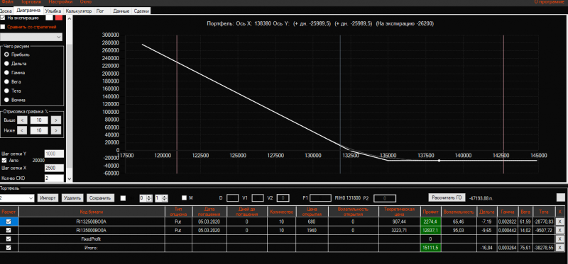 Вчера вечером в конструкцию Продажа короткого стренгла добавила 3 пута 137500 страйка Получился такой профиль!ГО составляет 21325 пунктов!