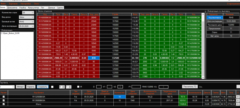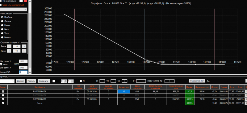 Добавила в позицию путы 132 страйка по цене 680