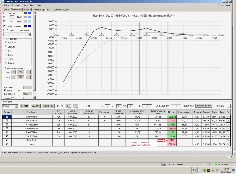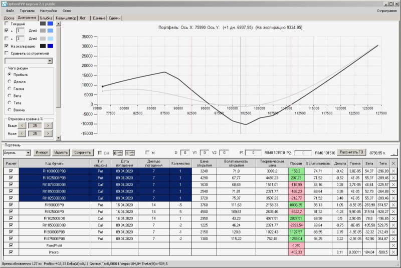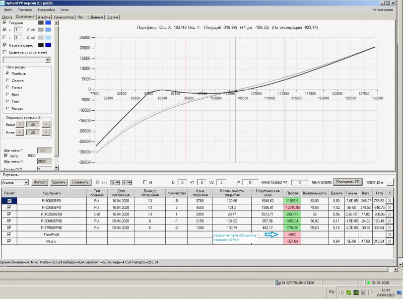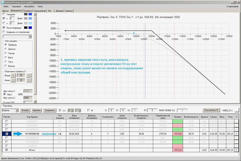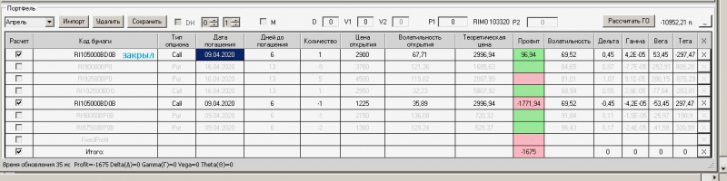 добавил один проданный пут 97,500, тем самым убавил убыток на экспирацию до 1660 п.