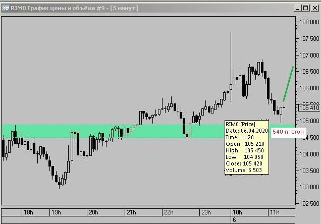 Цена сходила по фьючерсу вот так. выходит я правильно спланировал направление - это радует. подход верный в анализе выбрал при торговле на m5 графике.