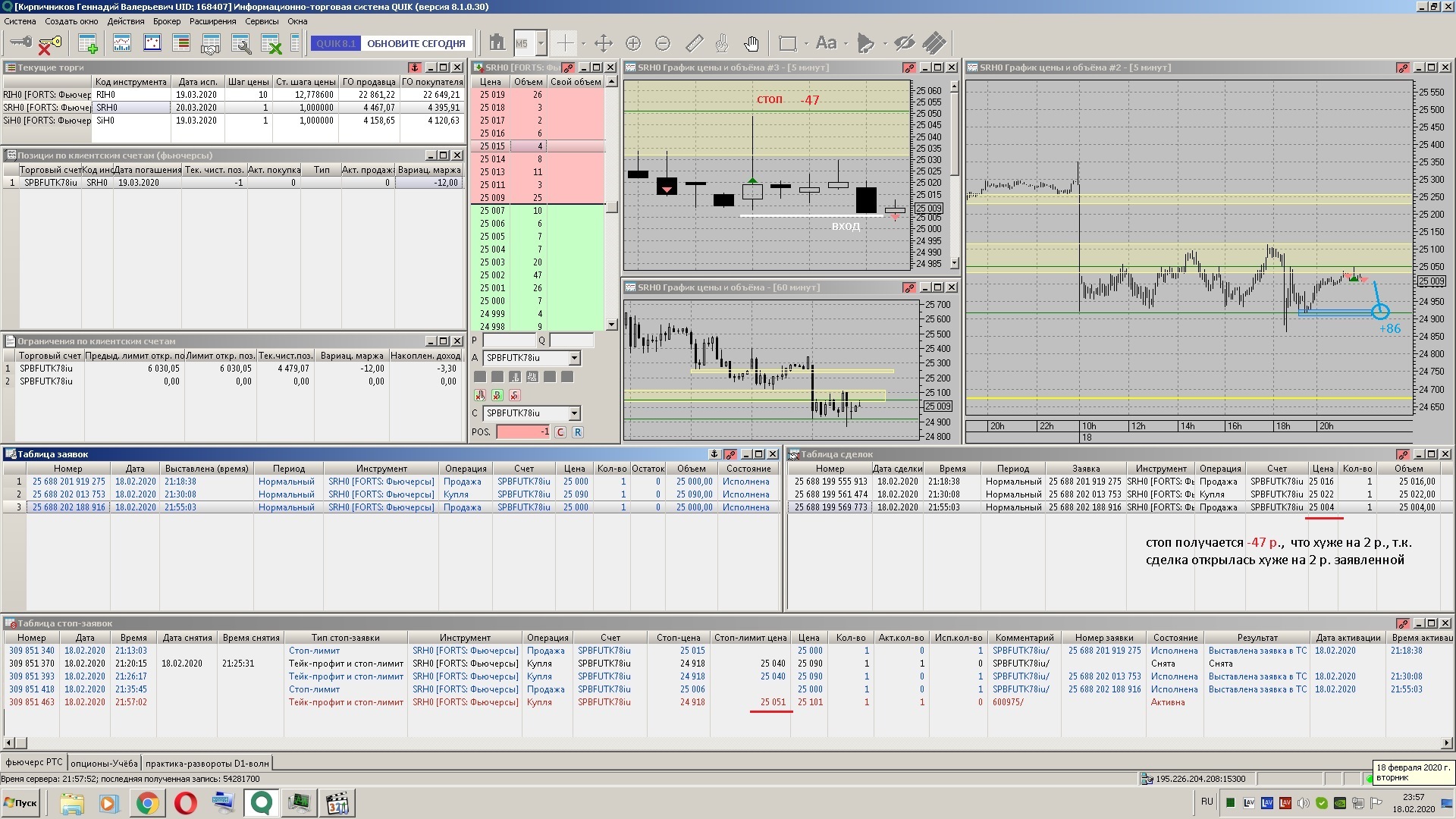 Сделка на реальном счёте, доллар рубль.