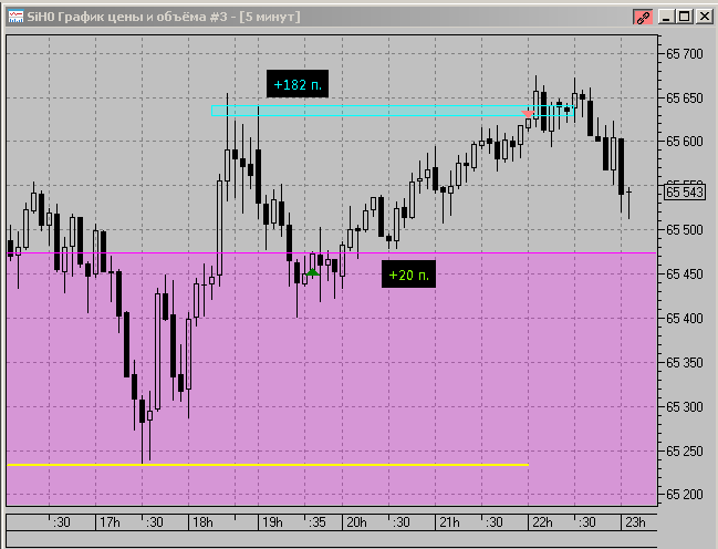 Итог по сделке: запланированный стоп был -24 п., сработал на резкой свече m5, и принёс убыток -6 п.