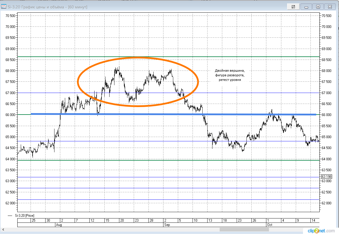 Вход на пин-баре по цене 63830, стоп по 63940, тейк по 63000.