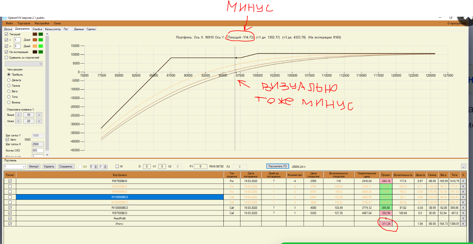 Дмитрий, извините за вмешательство. Где Вы видите свою позицию в зоне прибыли? "Текущий" -114,73, визуально тоже видно, что линия графика "На сегодня" по текущей цене БА ниже ноля.