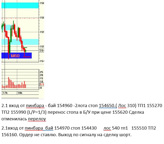 Борис, Прошу прощения. В своем ответе я ошибочно ориентировался на другую сделку. Да. действительно, лыжи образовались на 100п выше от уровня Н4 (оранжевый цвет), а по условию домашнего задания фигура должна быть на уровне. Хотя в реальной торговле я бы считал, что отскок произошел от уровня, т.к. ширина зоны уровня (у меня она 200п) понятие субъективное, и очень часто для защиты уровня "УМНЫЕ ДЕНЬГИ" выставляют ордера перед уровнем и разворот происходит не доходя до уровня. К тому же, риск этой сделки не превышает 2% от капитала (стоп 370п или 500руб. при ГО 25000руб)