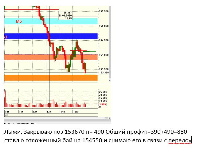 торговля 31.01 -первая сделка с профитом 1100