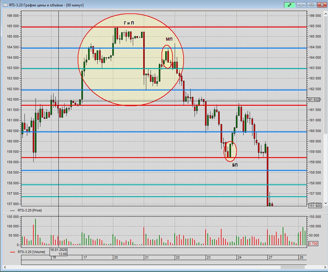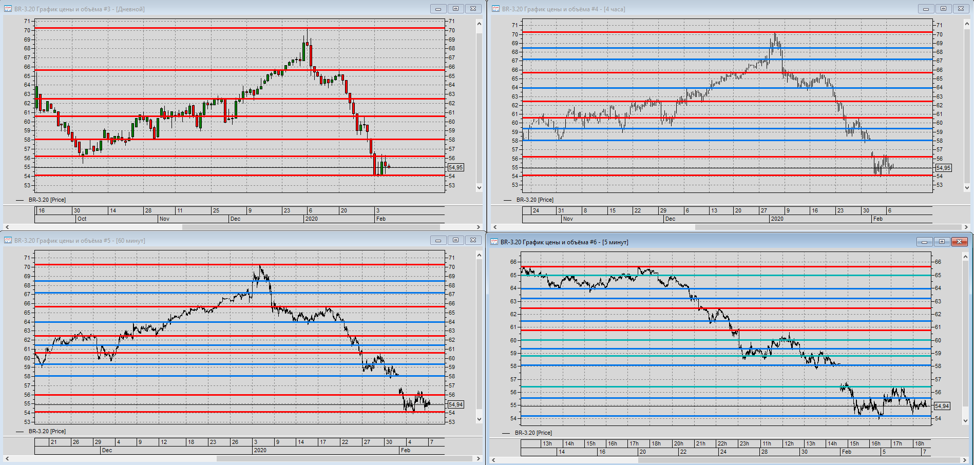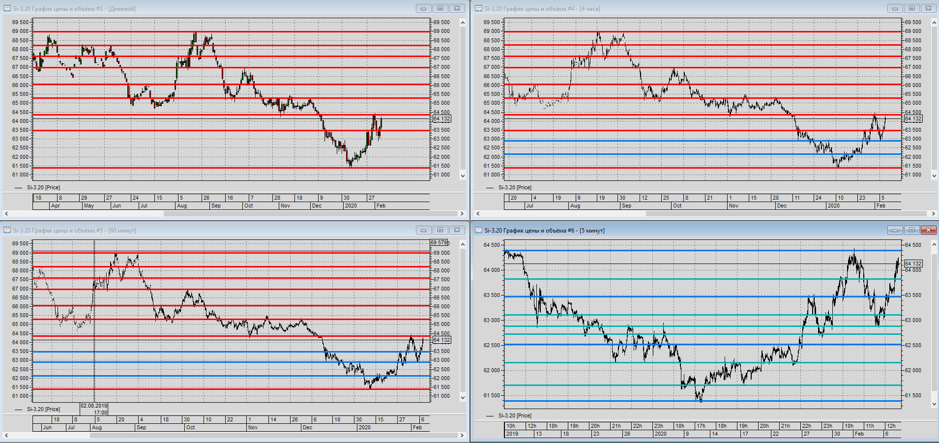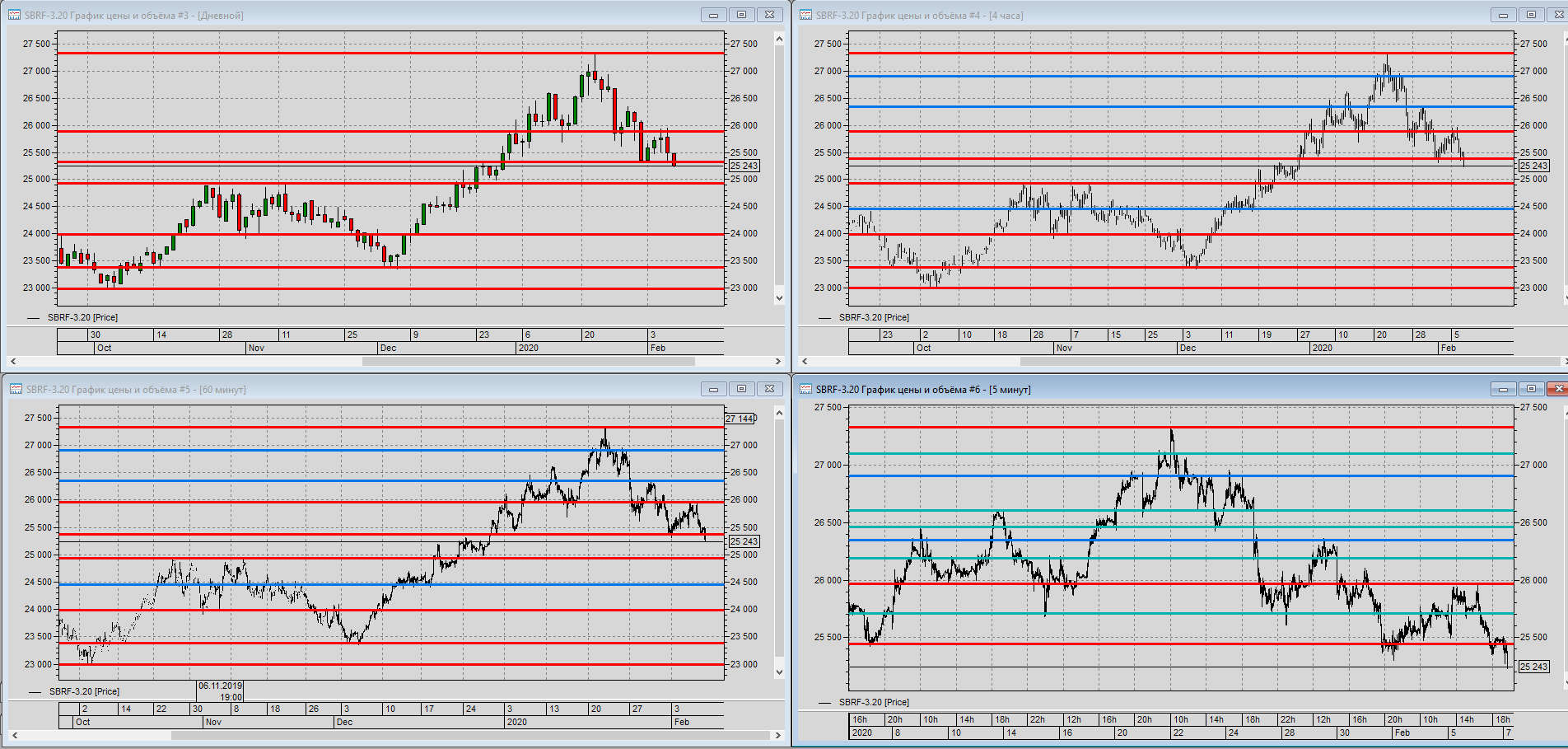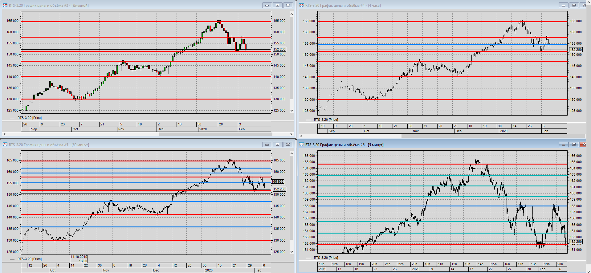 Уровни RTS, Br, SBRF и Si на ТФ: D, H4, H1, M5
