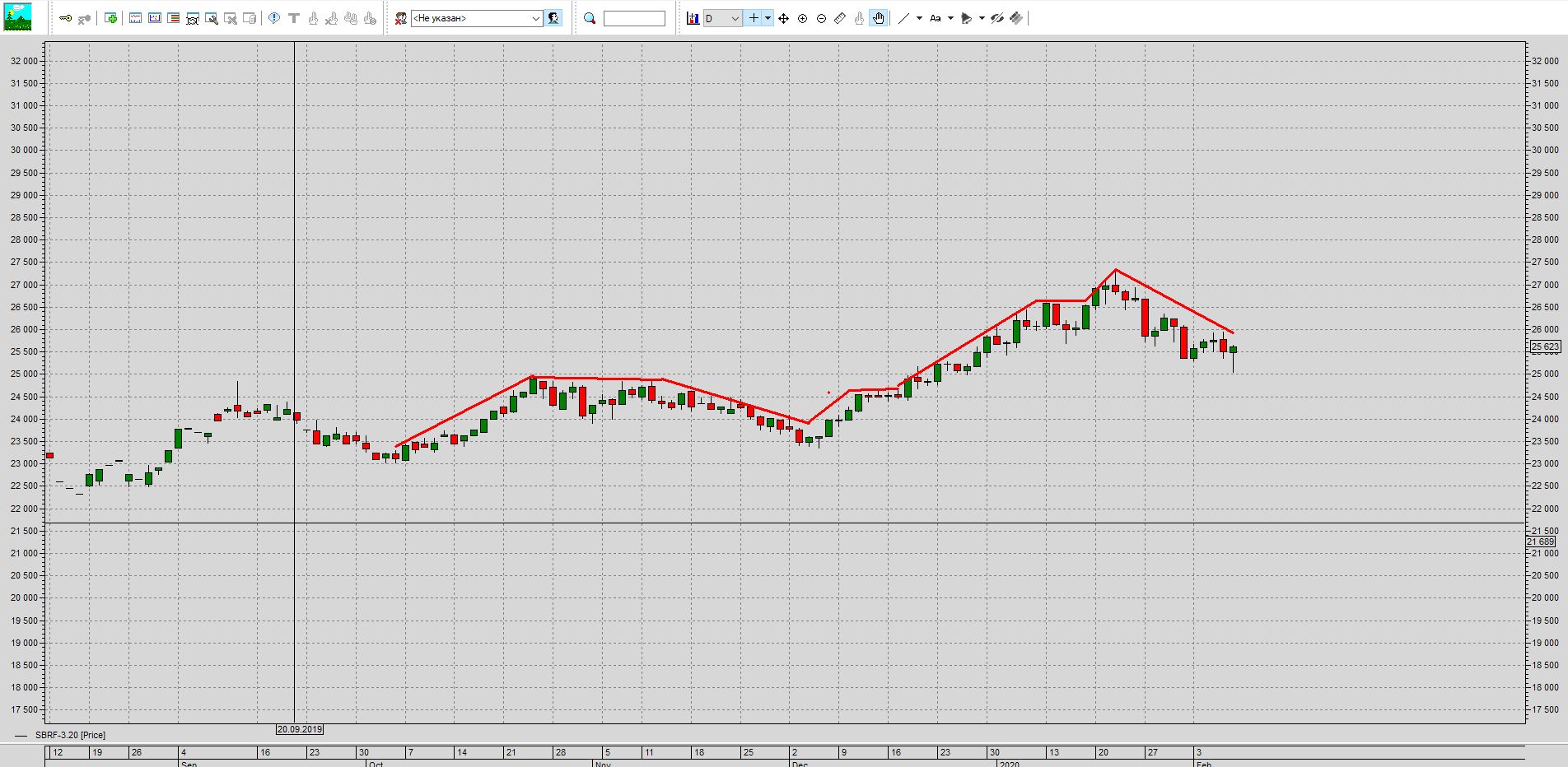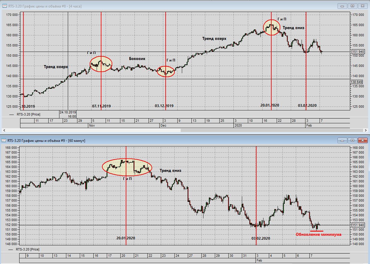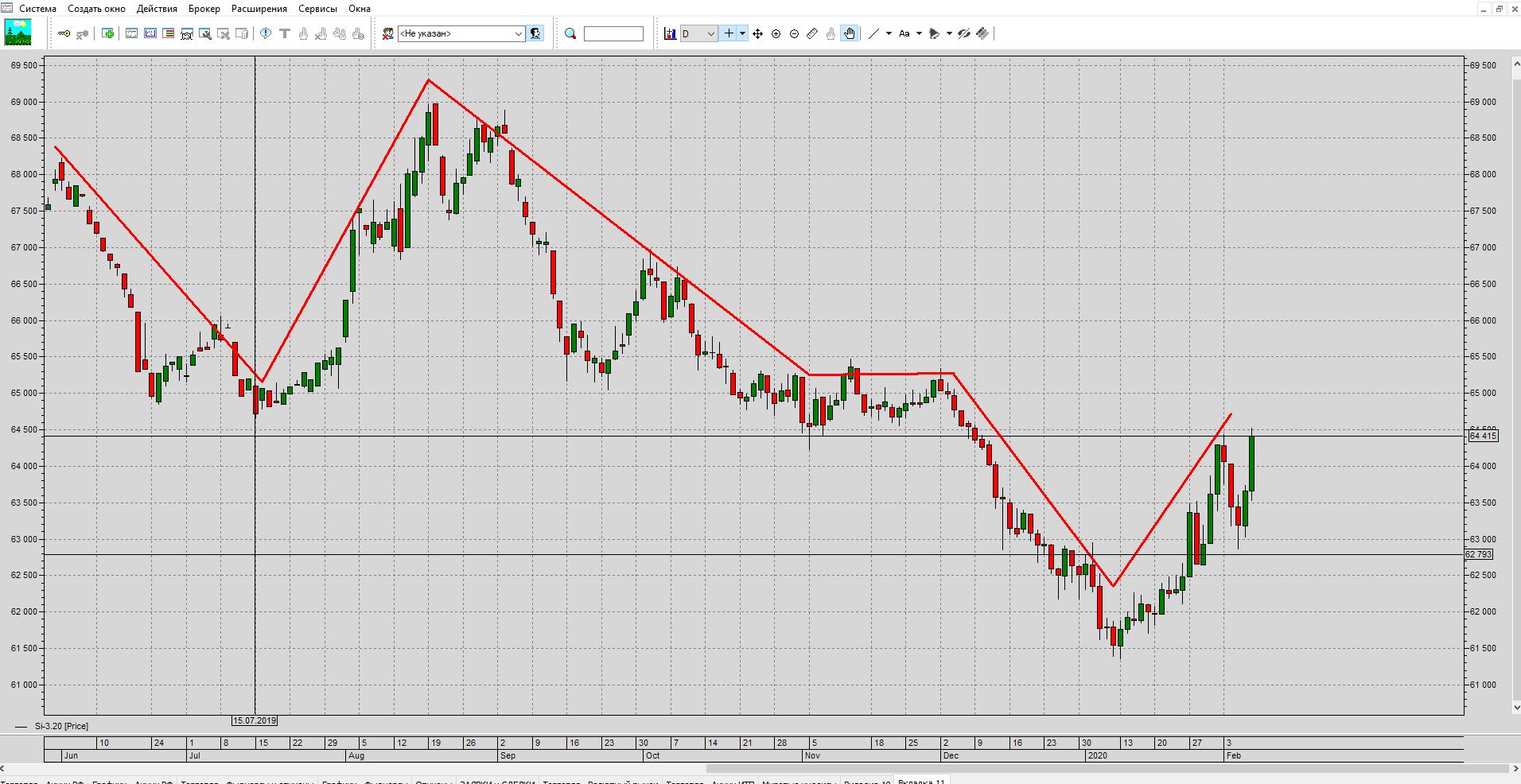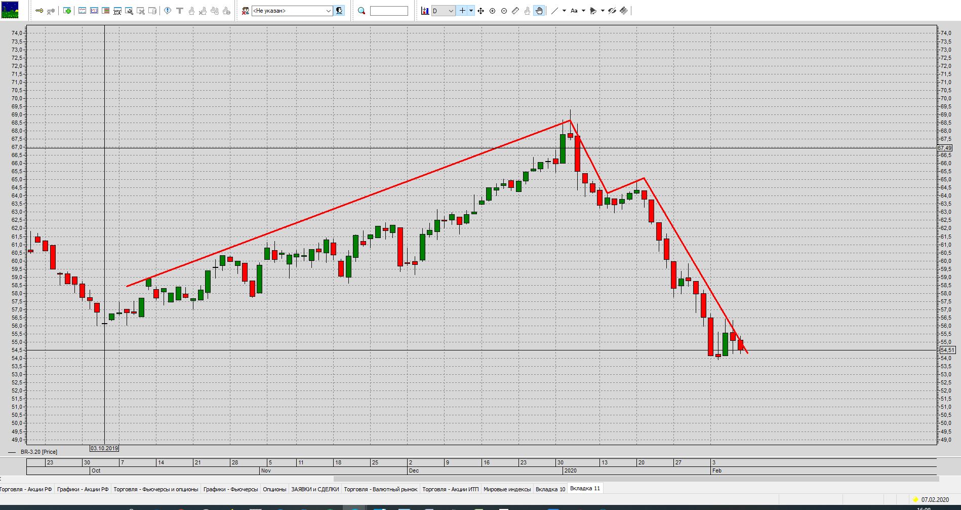 07.02.2020 произошло обновление минимума, поэтому возможно продолжение нисходящего тренда.