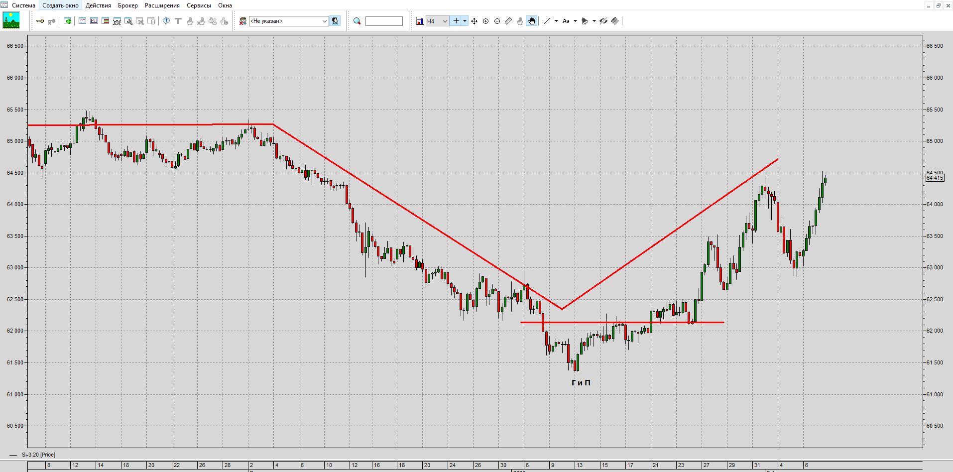 Вы не внимательно прочитали моё сообщение. Точка входа находится ниже минимума фигуры и РЕАЛЬНО находится в уровне. "...  - точна входа в шорт при этом будет находиться сразу НАД уровнем..." (Михаил Александрович).  Где Вы её увидели над уровнем, если Вы пишите, что фигура находится в уровне???