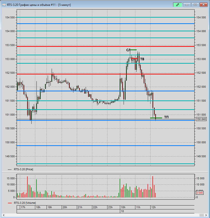 Так я и говорю, что ТВ в шорт не должна по ТС ставиться выше уровня. Она может конечно находится выше уровня при перевороте, но это мера вынужденная. Я конечно знаю, что торгуется вероятность и наша задача склонить её в свою сторону с помощью ТС. ТВ конечно можно (но не нужно) ставить где-угодно, ибо статистика говорит о том, что лучше торговать от уровней. А насчёт 2 шагов цены - дело вкуса,  можно ставить и 3-4 шага цены на Ri, где стоп может достигать нескольких десятков  шагов цены (сотен пунктов).