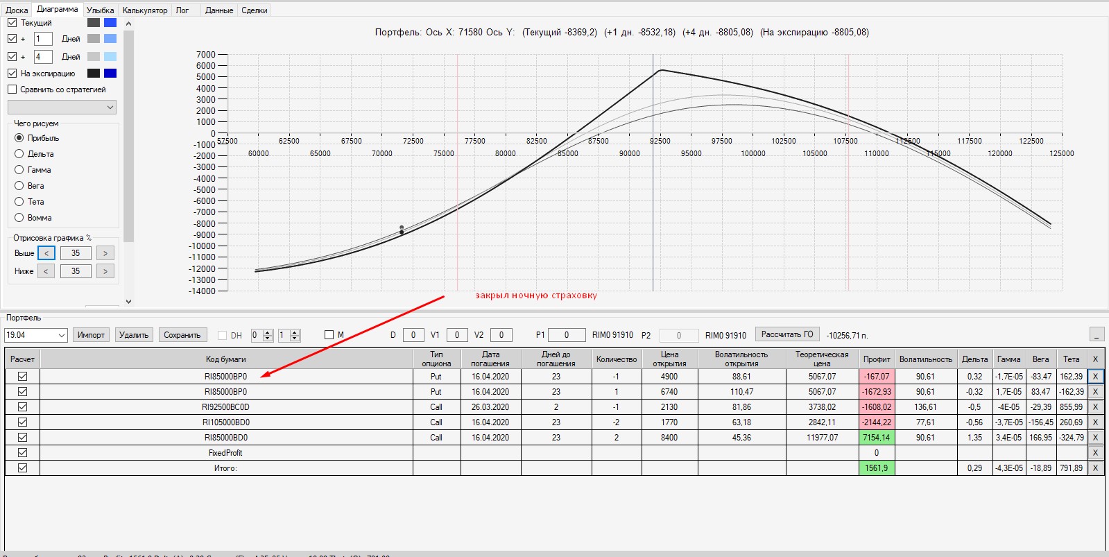 Тем не менее это было крутое упражнение. Удержать конструкцию с проданными краями на ТАКОМ волатильном рынке - это очень не простая задача. Без принципа введения страховок и отслеживания контрольных точек это было бы невозможно.