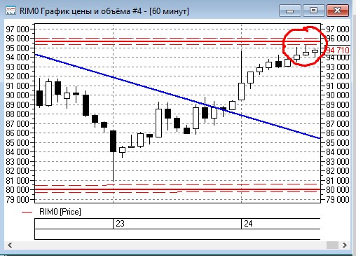 РТС подошел к 95000, сформировав от него два шортовых пинбара.
