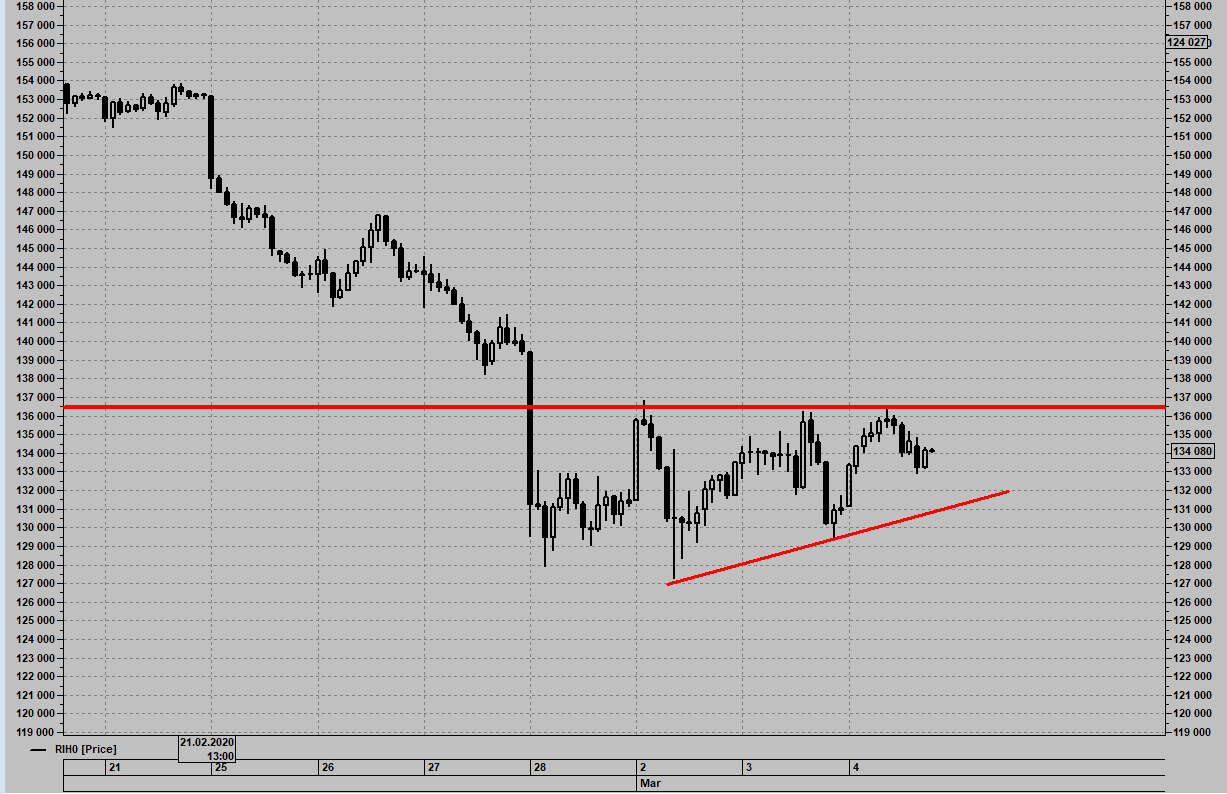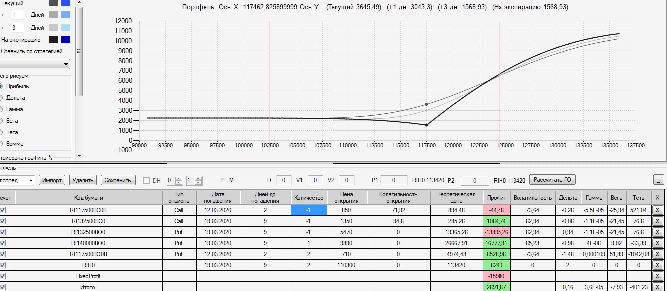 изменения по колл-спреду: закрыл страховочный 130 колл экспирации 12.03 и на случай резкого отката купил 112 колл экспирации 12.03. если цена ФРТС пойдет вниз буду оставлять конструкцию, если цена задержится в диапазоне 107500-112500 буду закрывать конструкцию.