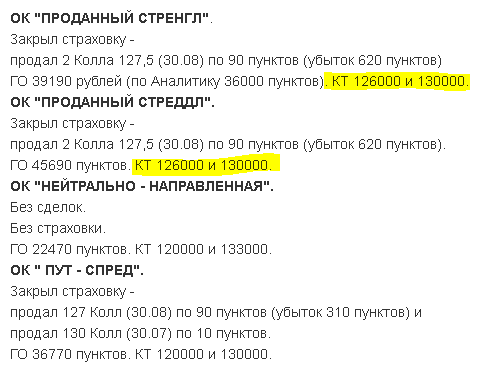 Продал 127 Колл (30.08) по 1000 пунктов (прибыль 270 пунктов).