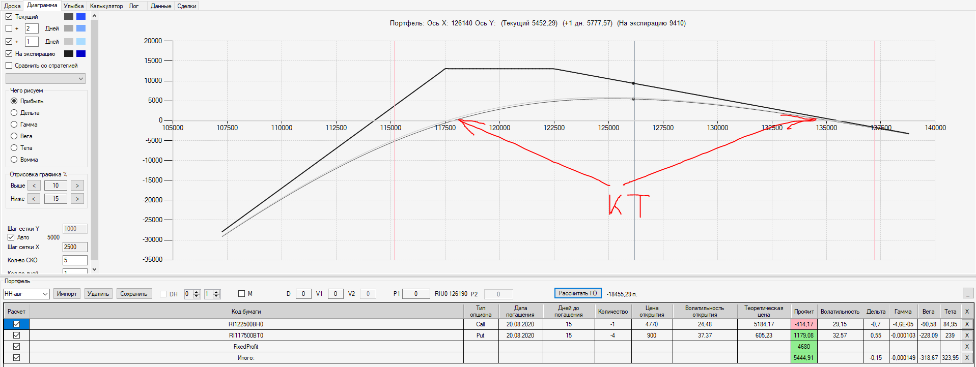 откупил 3 Колла 125 (20.08) по 5420 пунктов (убыток - 2070 пунктов) и