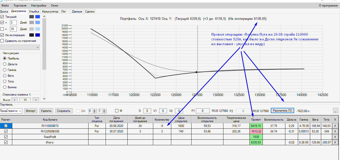 если разобрать представленный мною Профиль - Предпоследний.Я же предварительно прогонял страховочные опционы на Аналитике и выбрал тот, который представил.