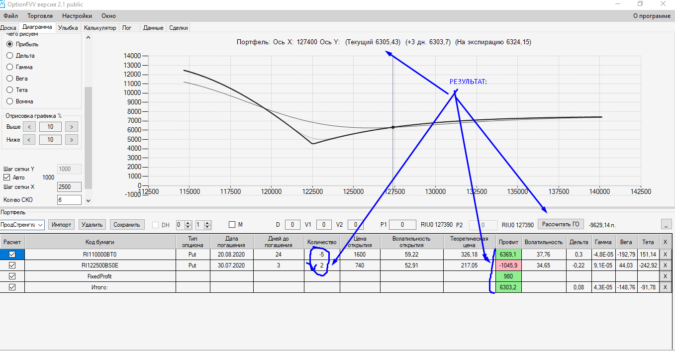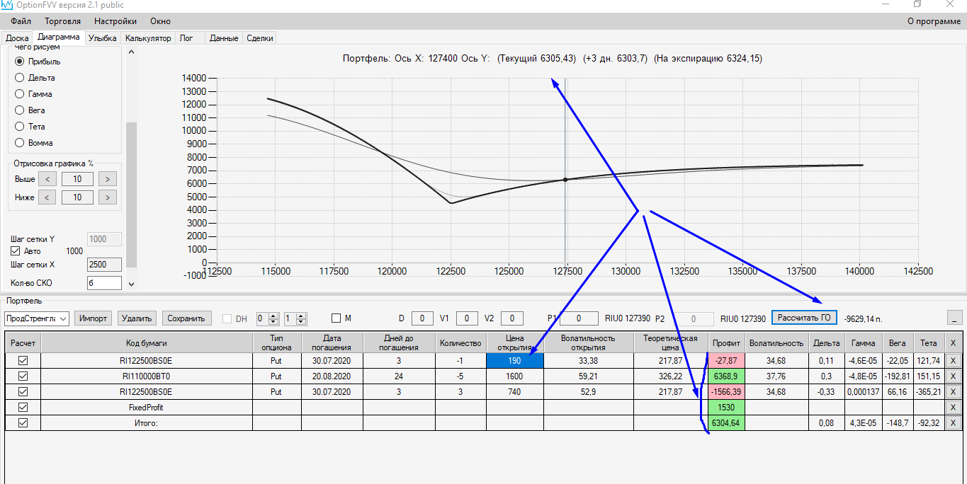 Ставлю в Аналитик значения из Доски опционов: