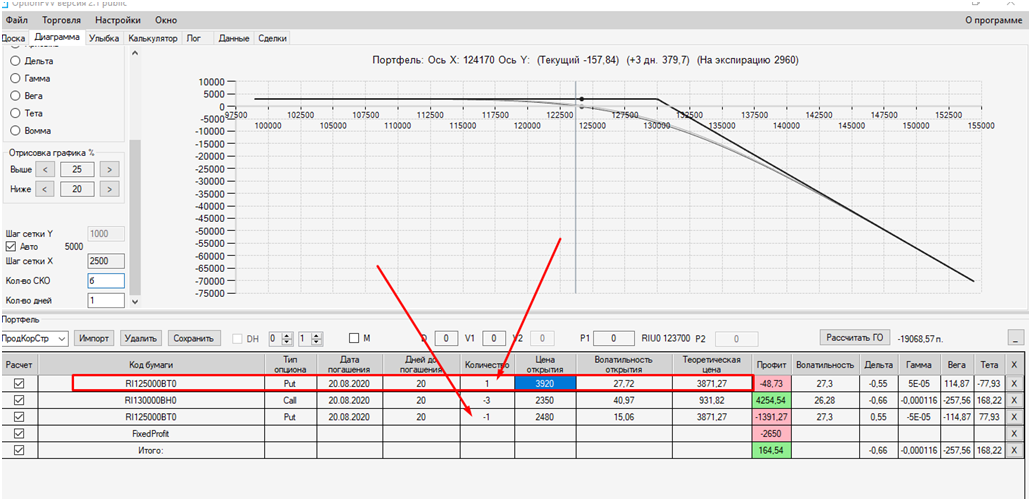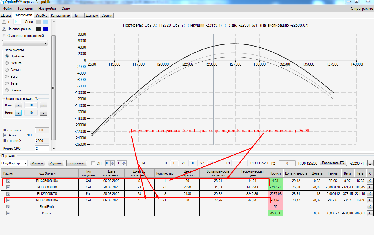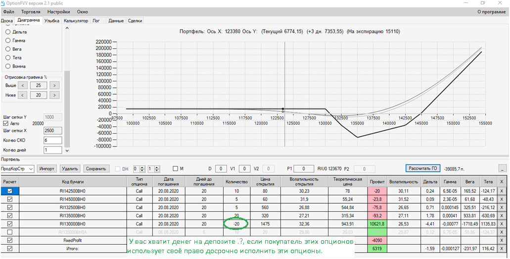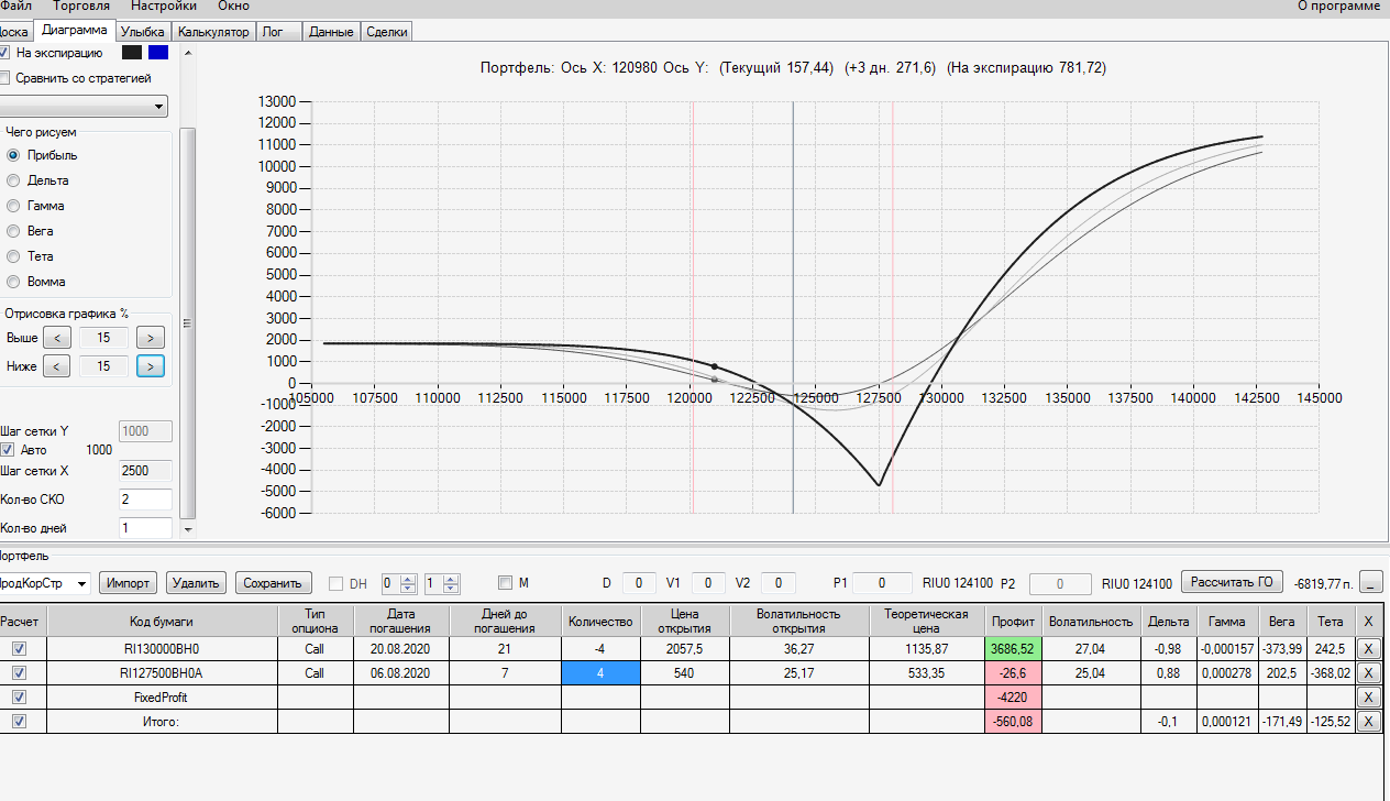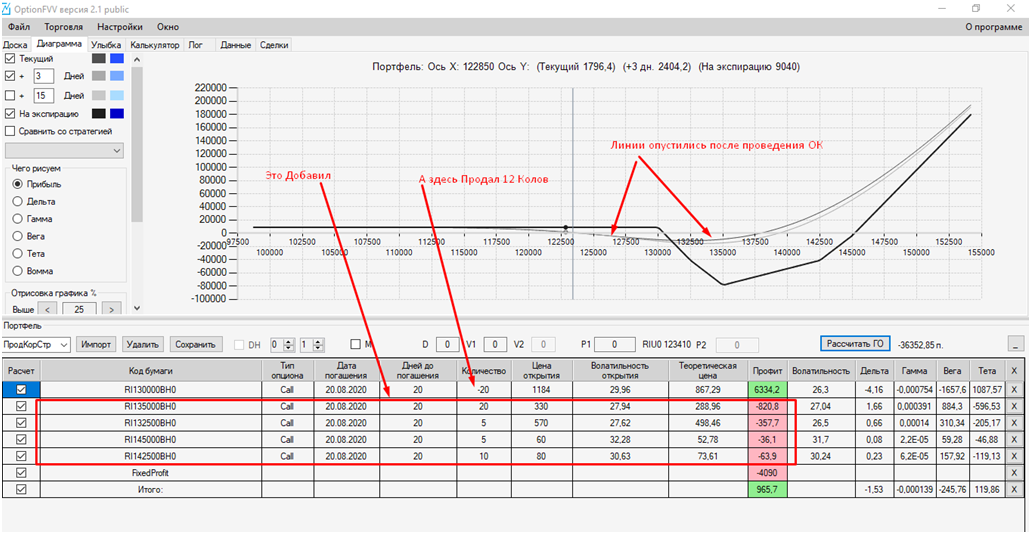 Я сперва торопился.. ставил опцион и сразу сохранял его отдельной строкой в профиле, далее с доски опционов ставил премию опциона в уже только что сохранённый мной опцион и опять нажимал на сохранение, в итоге получалось двойная страховка, и профиль общий ухудшался.