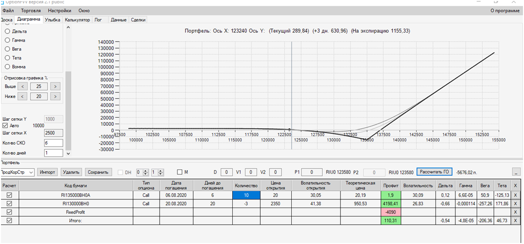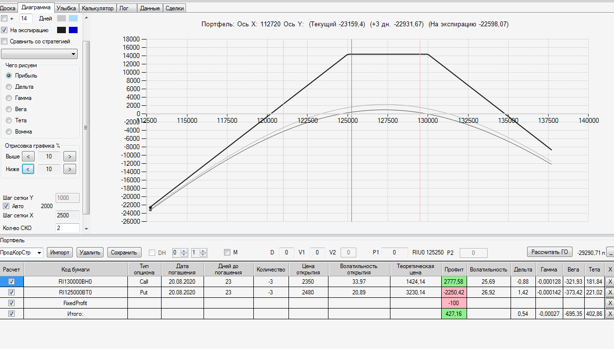 После продажи  1 опциона Колл (20.08) на 130000 страйке и перепроведения ОК  получаем Профиль, с приподнятыми краями.