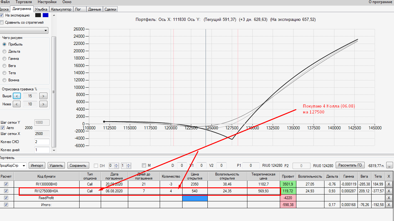 - покупаю 4 Колла (06.08) на 127500 страйке.