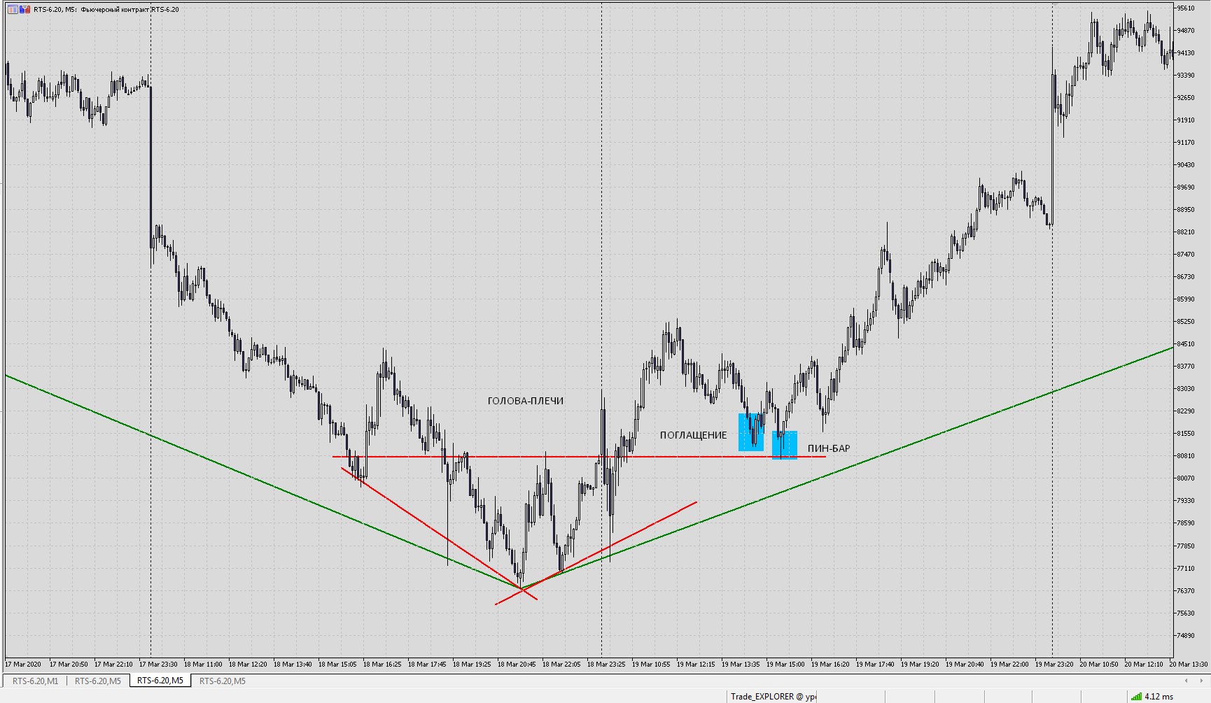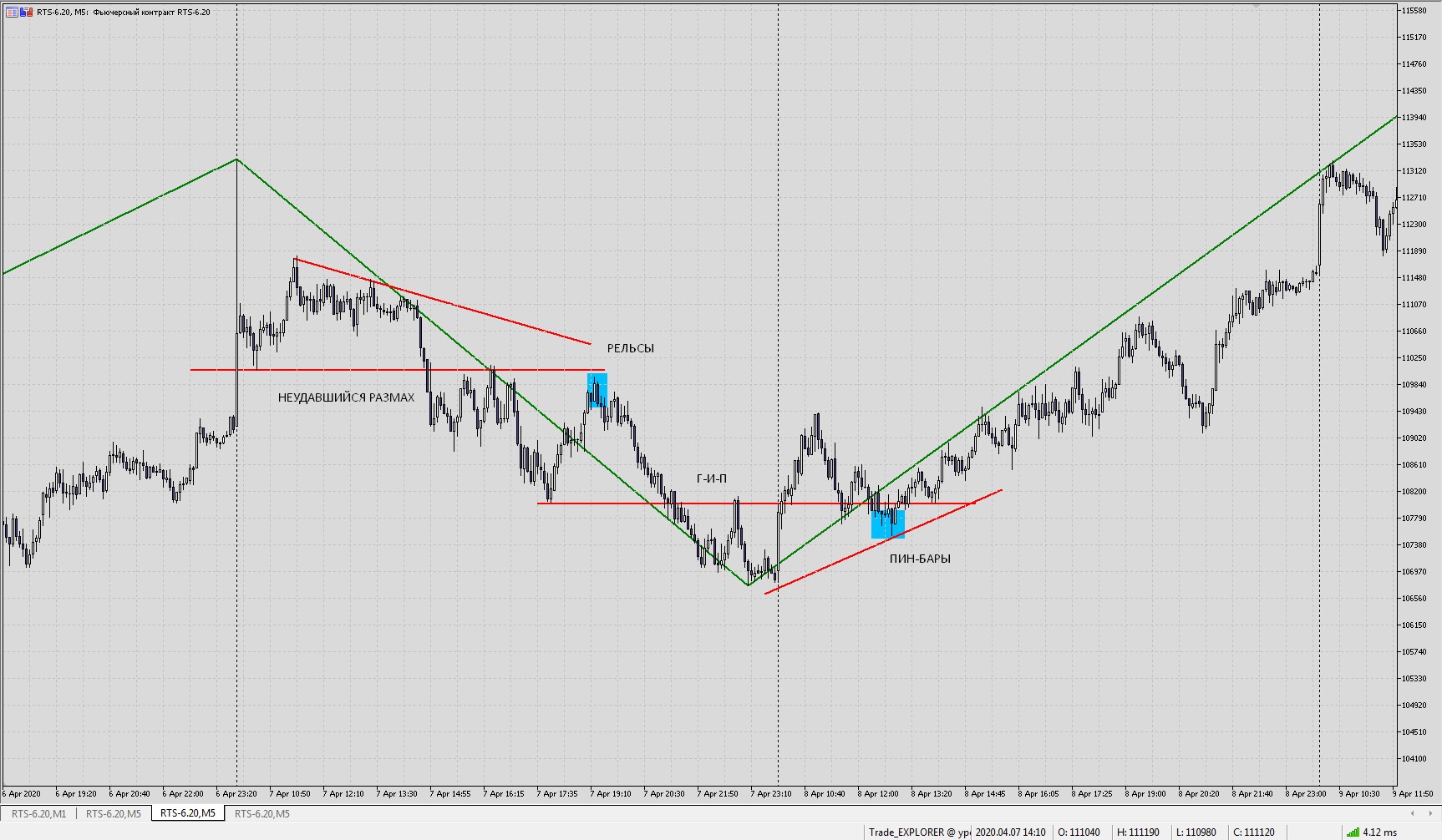 отмечал смену направления цены, фигуры в этих местах, и свечные комбинации