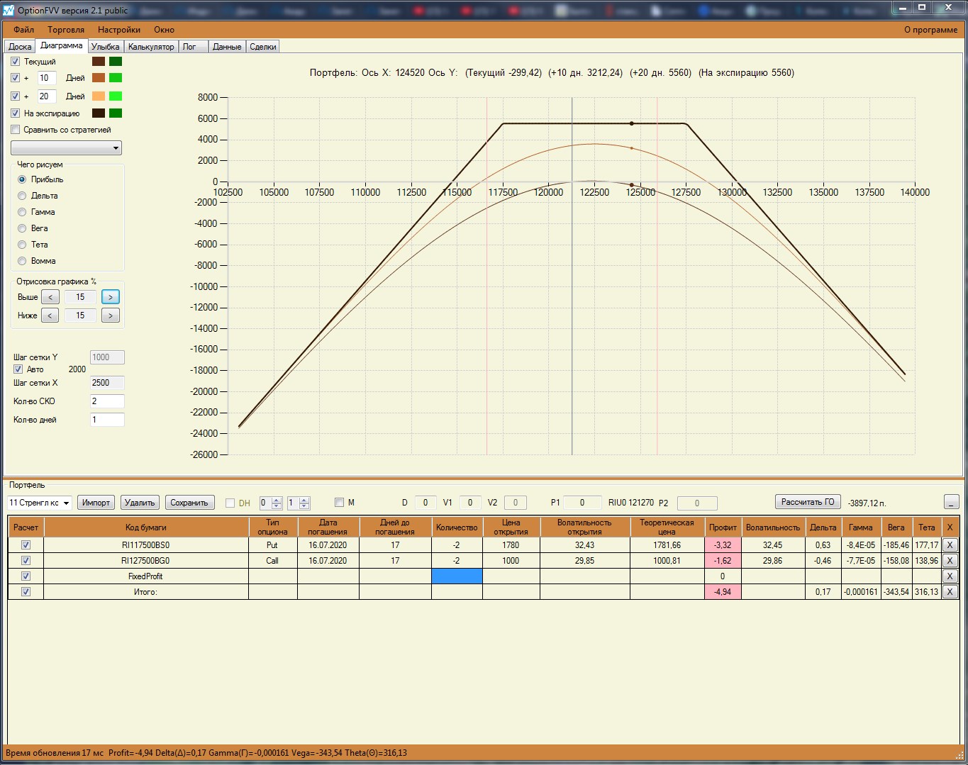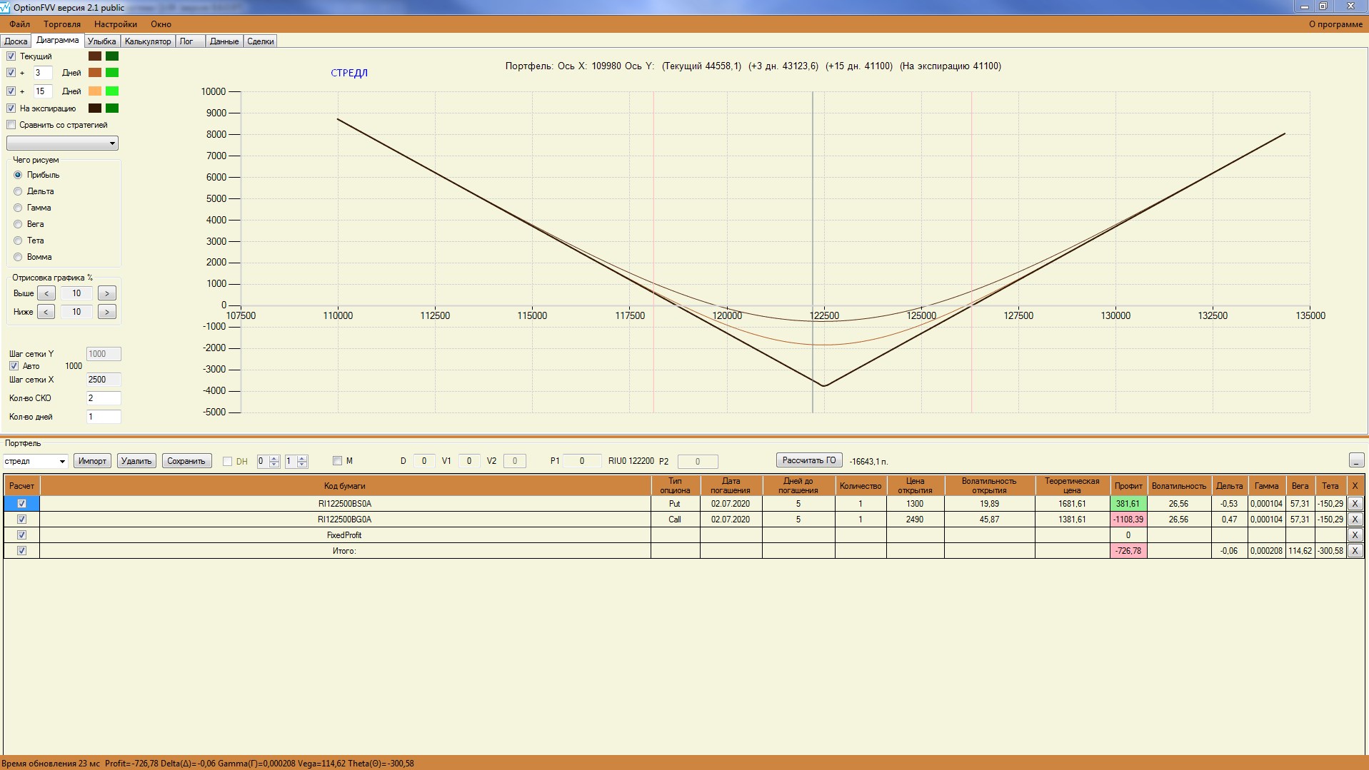 1. делаю ОК НЕ направленную - продажа кр. Стренгла. продаю страйки 127500 и 117500. по 1 опциону.