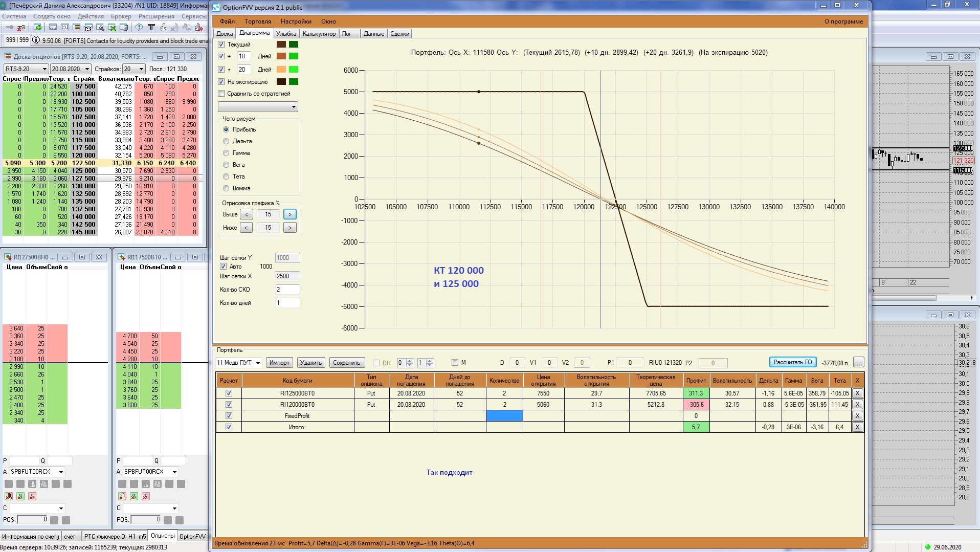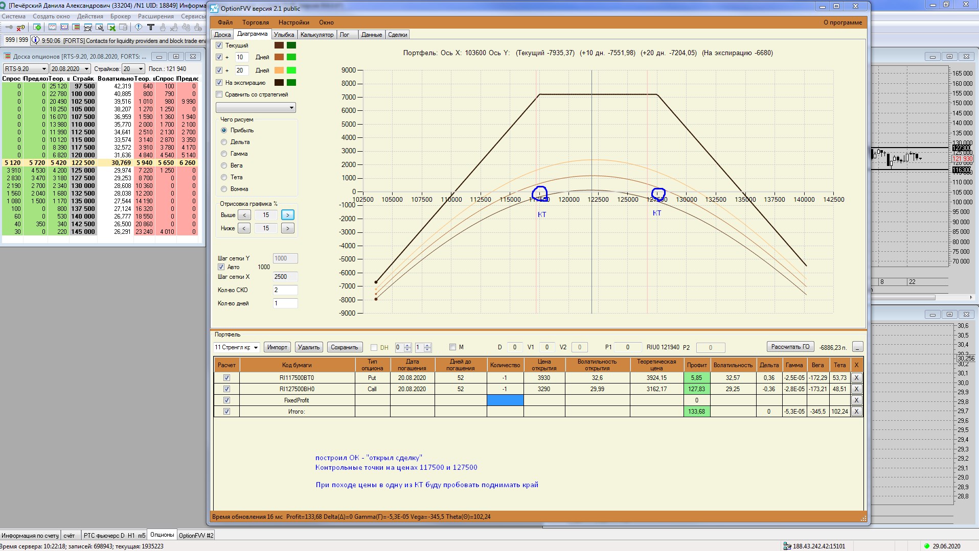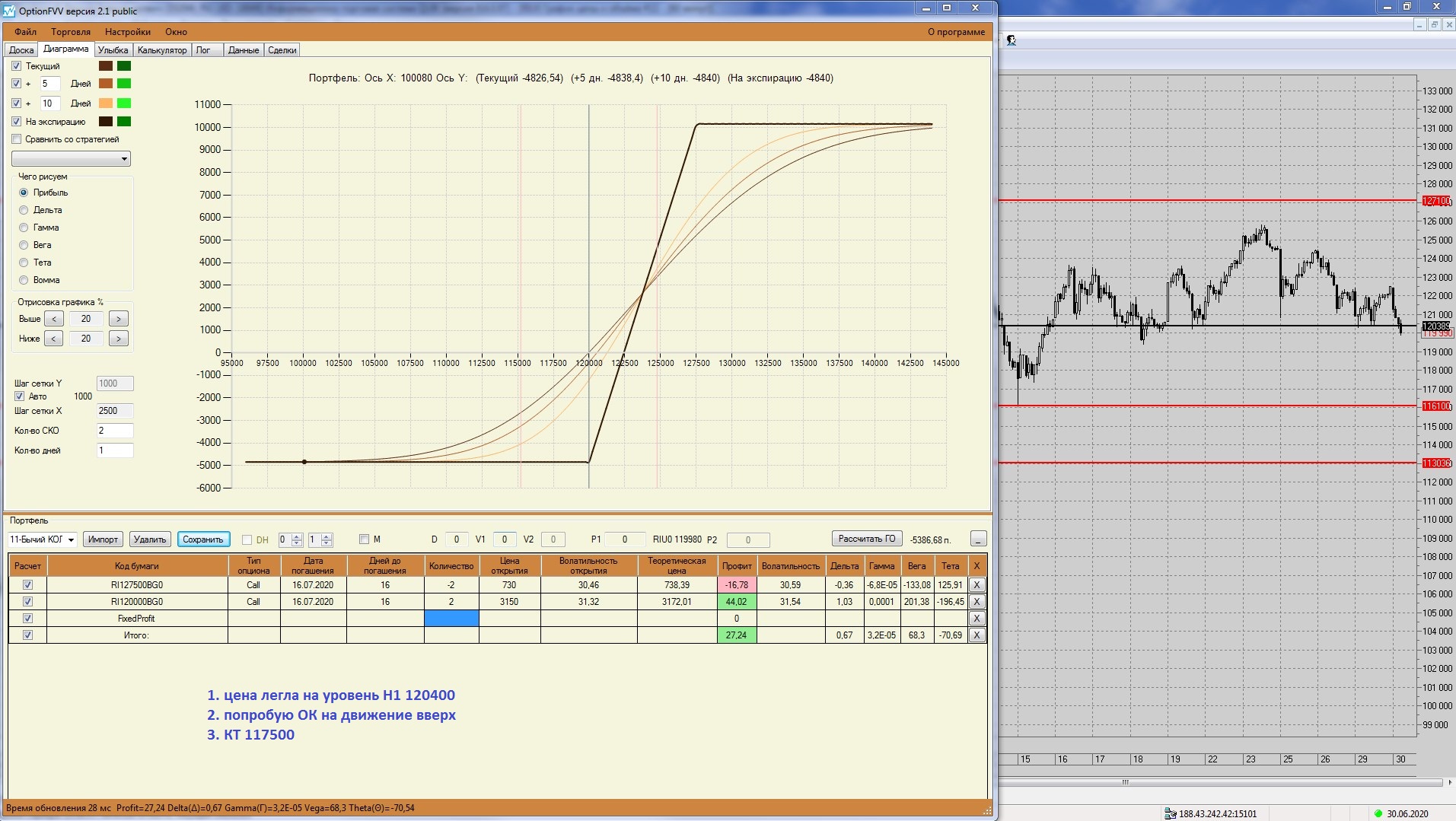 при подходе цена к КТ пробую управлять, а именно покупкой колл 125 страйка или пут 120 страйка.