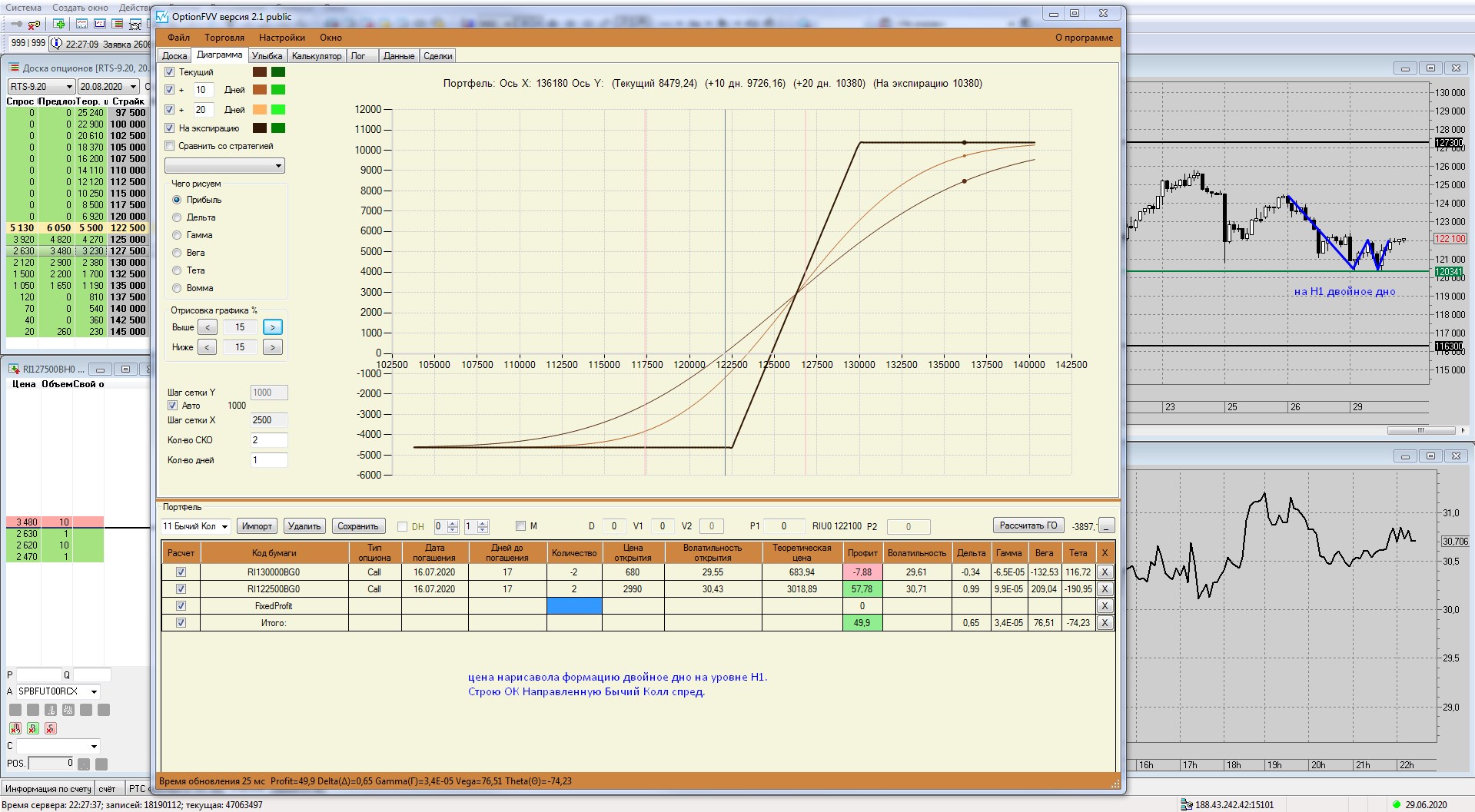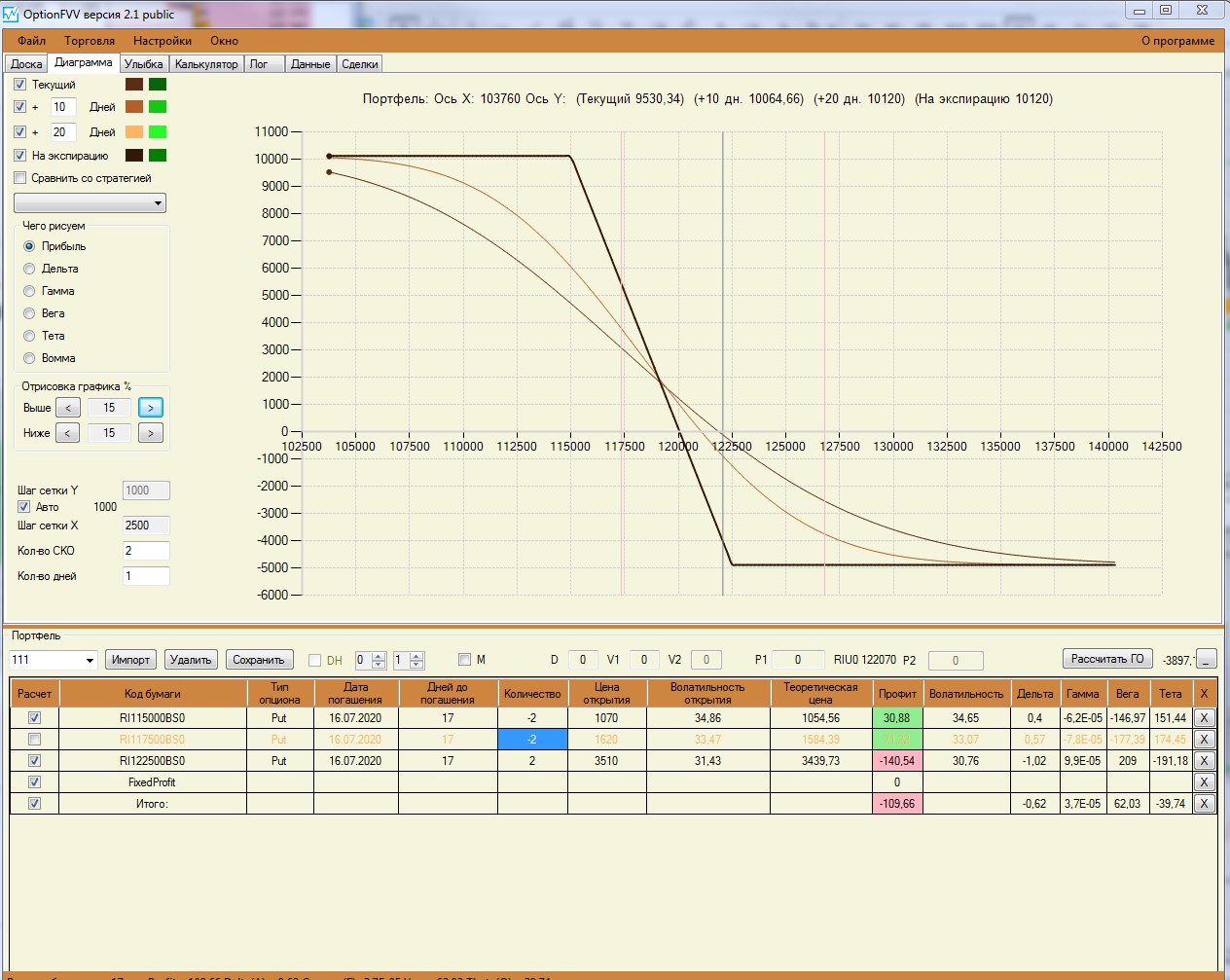или подождать, когда будут заканчиваться текущие опционы 16.07.20, и построить уже на опционы следущей месячной экспирации.