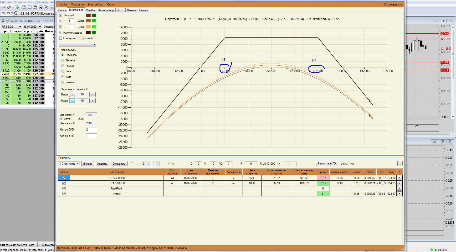 или подождать, когда будут заканчиваться текущие опционы  16.07.20, и построить уже на опционы следущей месячной экспирации.