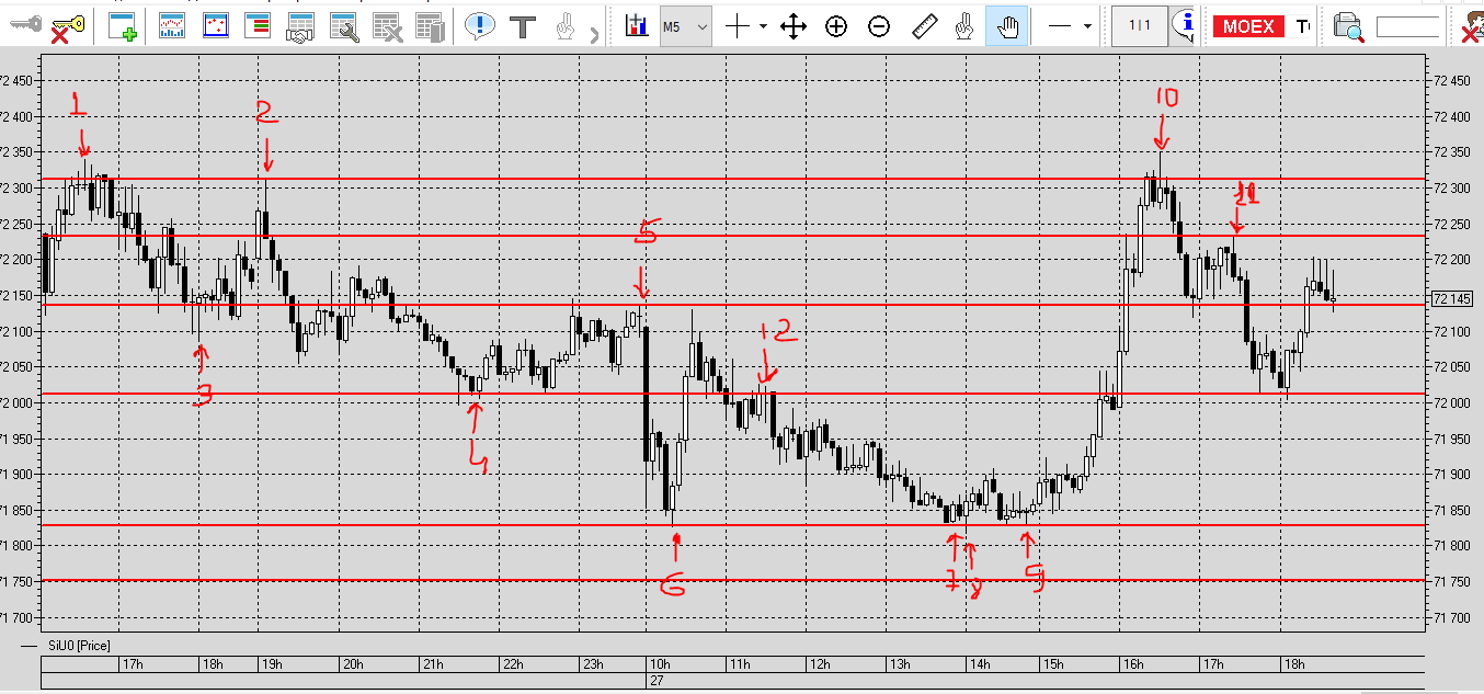 Евгений Товескиннаписал23 июля 2020 в 16:221.2.3.4.5.6.7. 10.11.12. отбой от уровня9 пробой уровня, ретест спустя 17 минутЕвгений Товескиннаписал23 июля 2020 в 16:341.2. пробой уровня, ретест3.4.8. ложный пробой5 ложный пробой? не уверен.6.7. отбой от уровня9 ретест уровня спустя 20 минутЕвгений Товескиннаписал23 июля 2020 в 16:42 ретесты уровней у Вас много ретестов проходят через флэты.Евгений Товескиннаписал25 июля 2020 в 14:43
